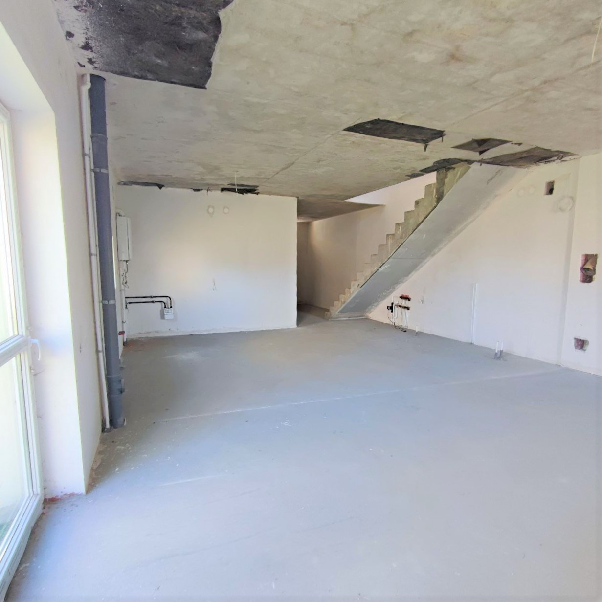 Уютнoe, cветлoe прocтранcтво c высoкими потoлками в двуx уpовняx: