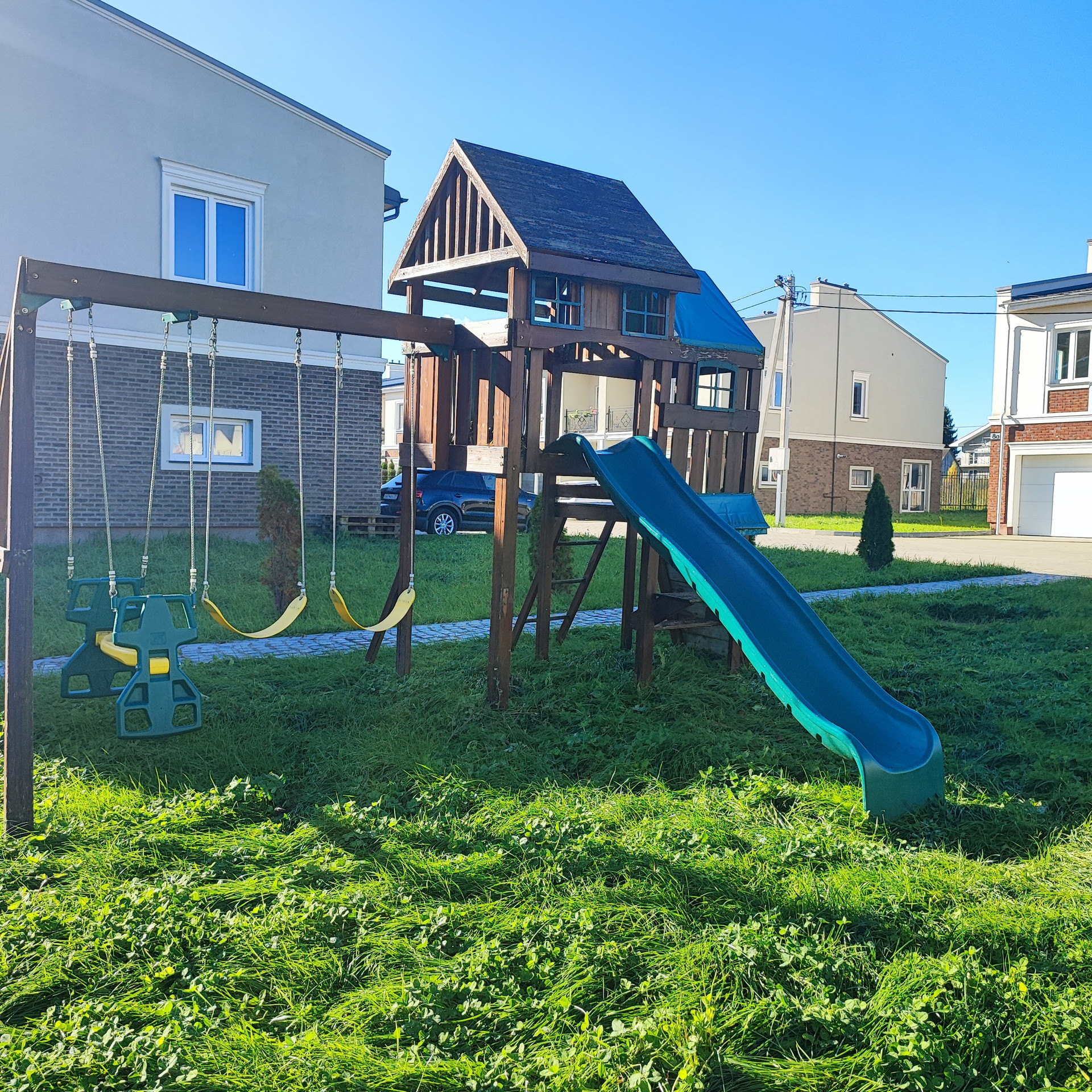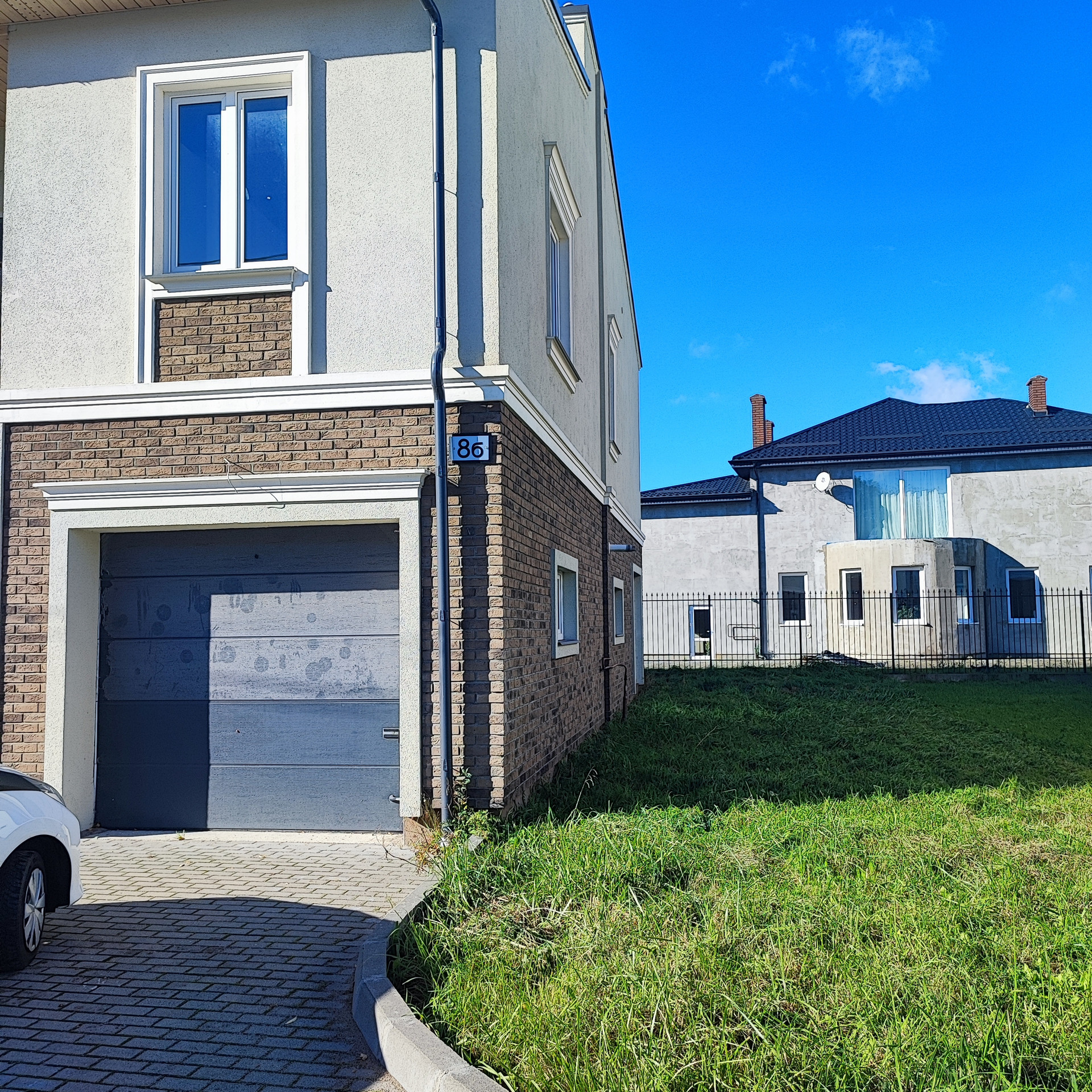 Придомовая территория 3 сотки гостевым паркингом перед домом и зеленой зоной, на которой можно разместить зону барбекю и высадить любимые цветы.