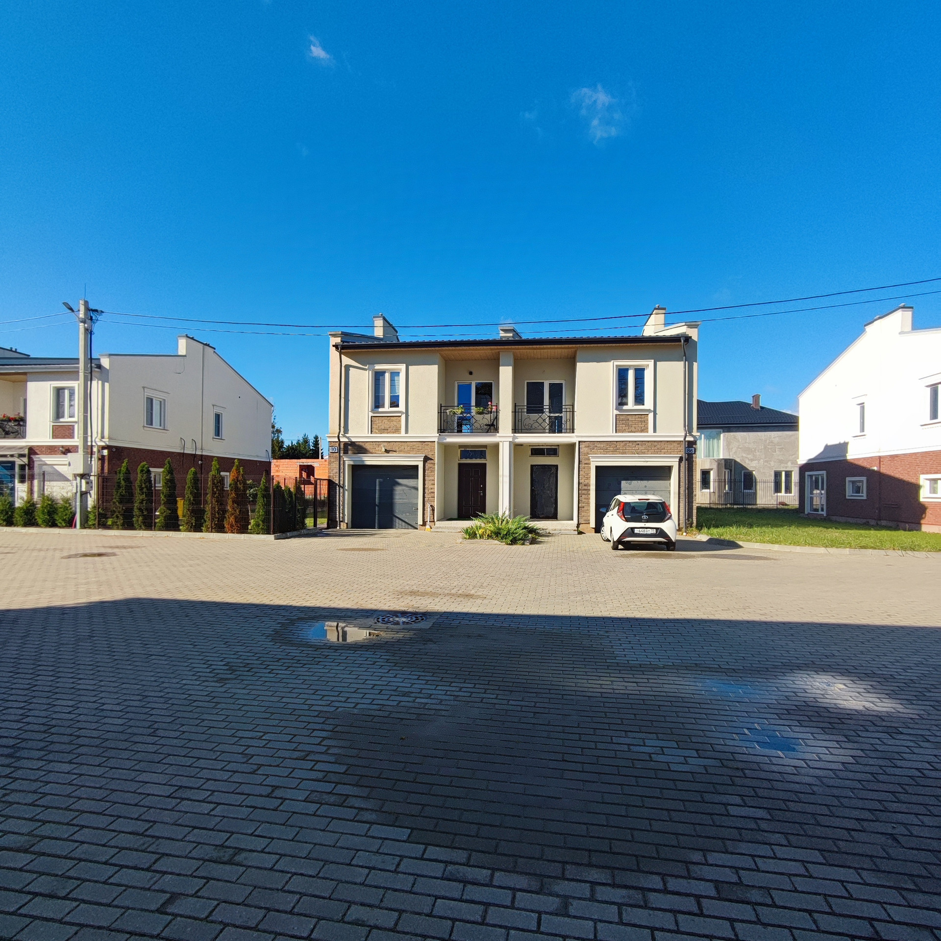 ЖК "Жасминовый" – камерное пространство. На закрытой территории разместились 12 дуплексов. Территория оснащена видеонаблюдением, проезды и пешеходные дорожки выложены тротуарной плиткой, выполнено озеленение, организована современная детская площадка, поселок освещен. Управляющая компания следит за бесперебойной работой внутренних коммуникаций и порядком внутри поселка. Оплата всего 1200 рублей в месяц.