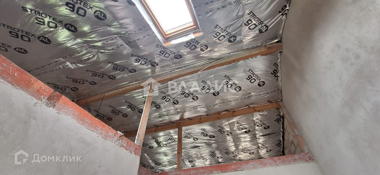 Высота чердака в коньке - 2 м, кровля утеплена, установлено мансардное окно.