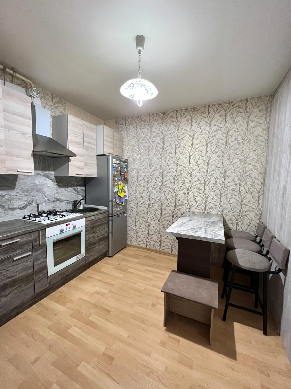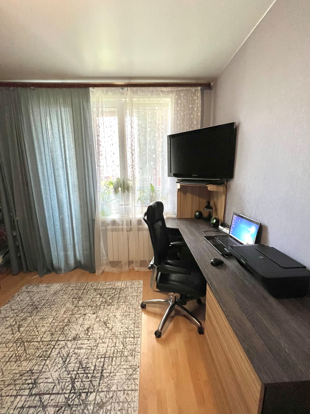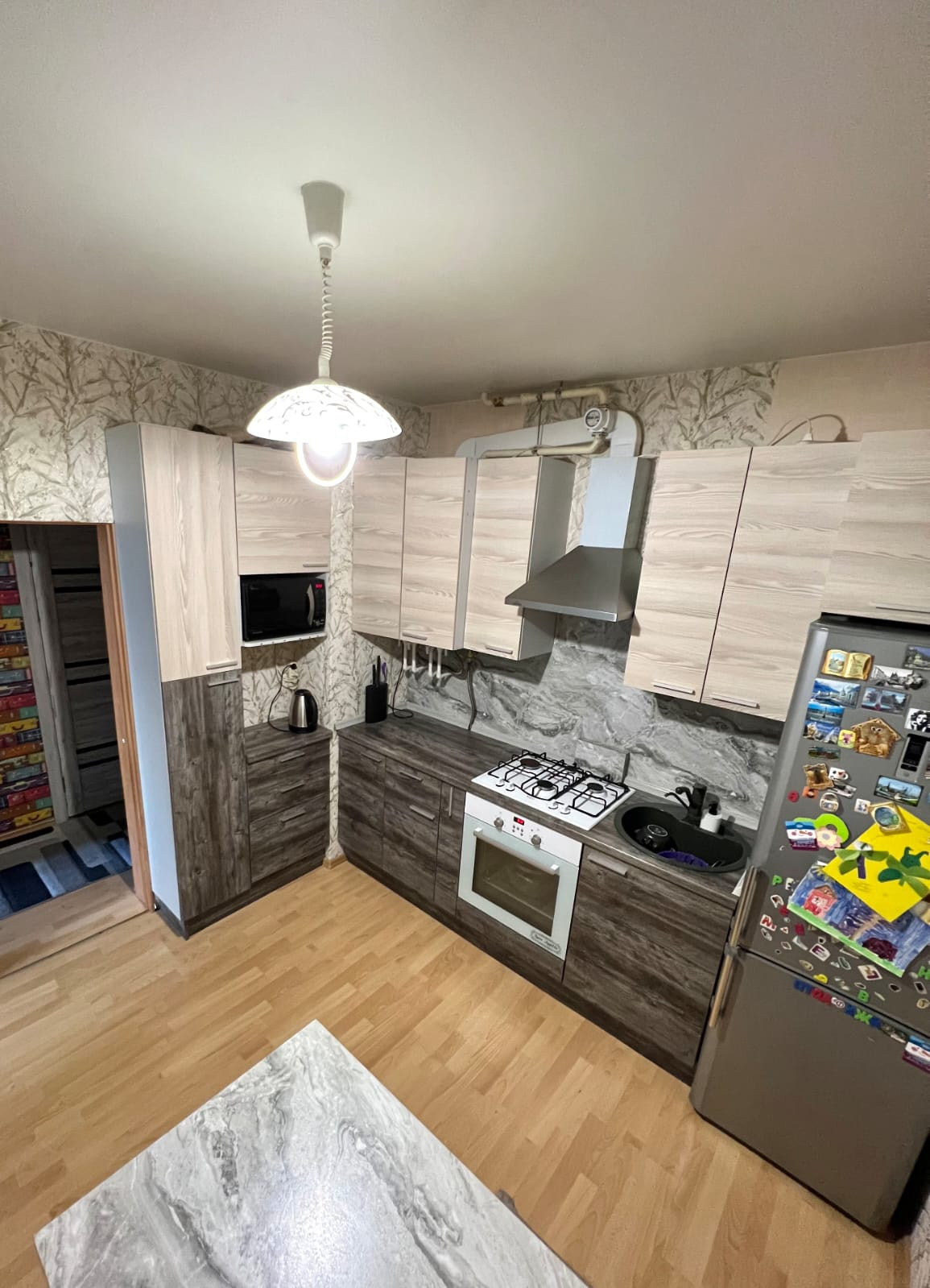 Квартира,оборудована встроенной кухней,и выделенной спальней,отдельная детская комната,с утеплённым балконом,полы ламинат,потолки натяжные, автономный газовый котёл,на отопление и горячее водоснабжение,теплый пол в ванной комнате и детской,свободна,более пяти лет в собственности