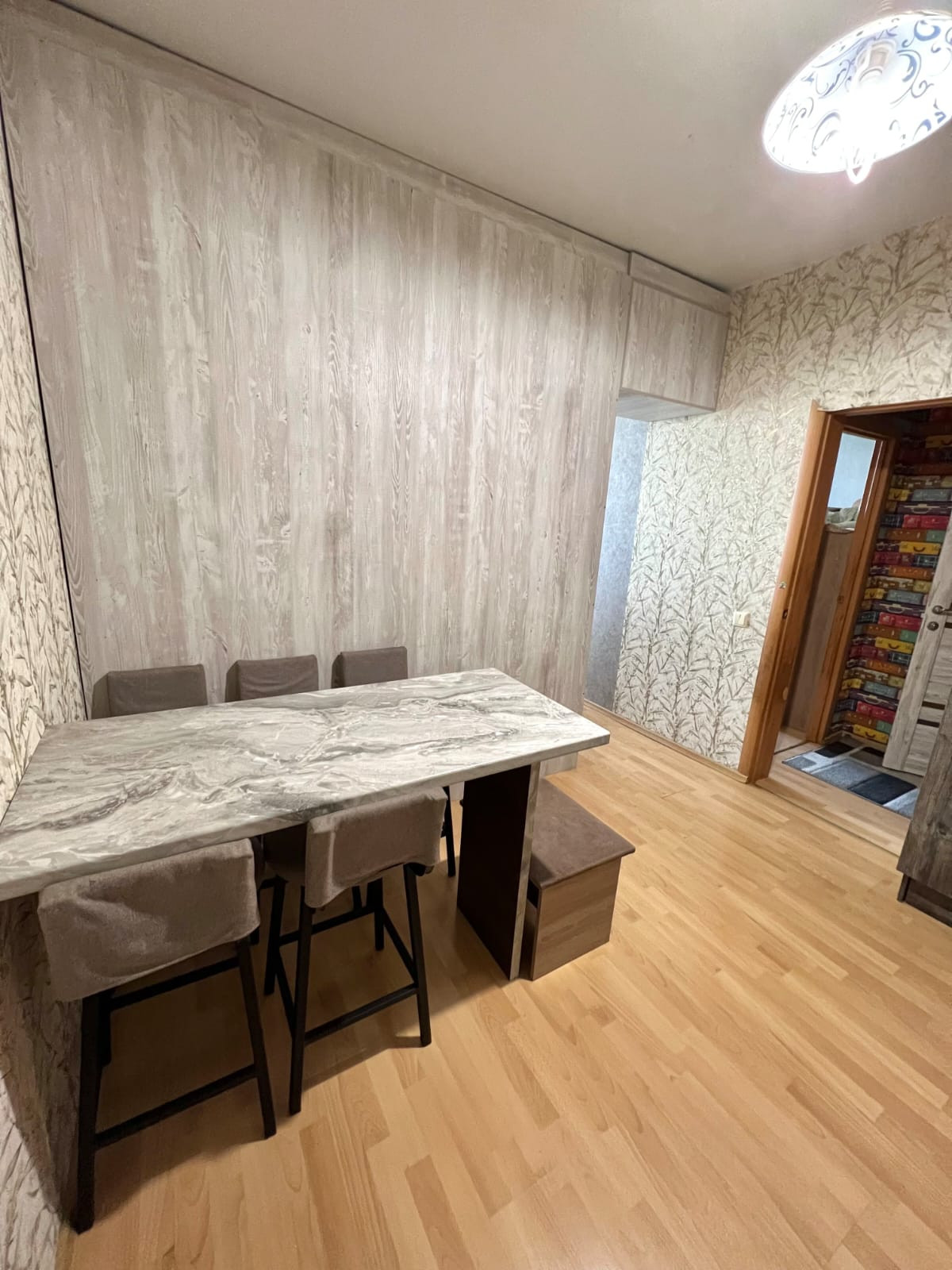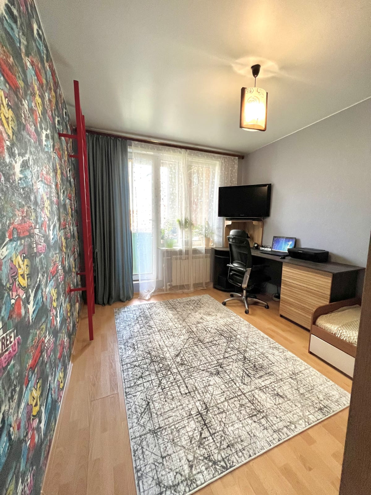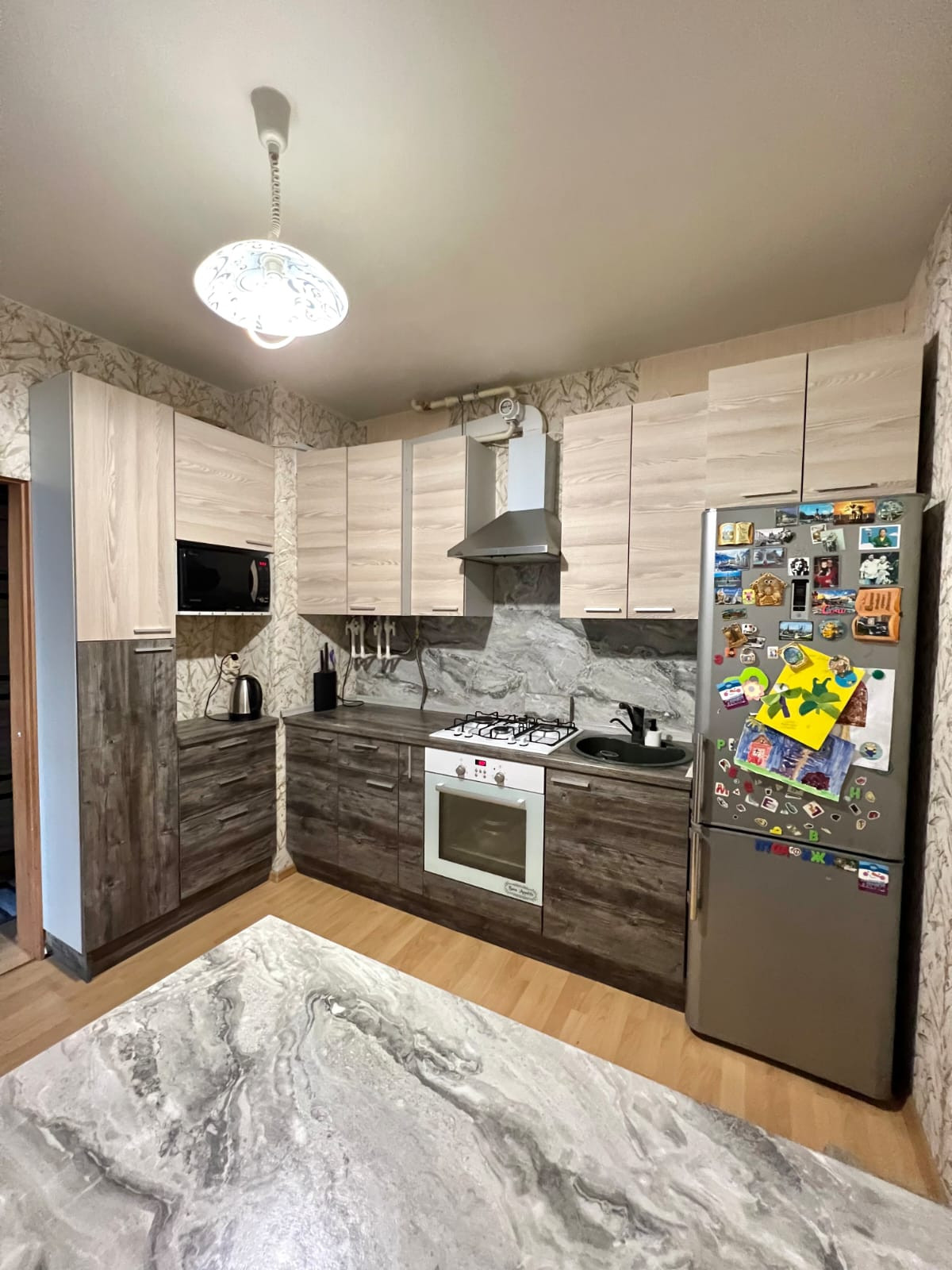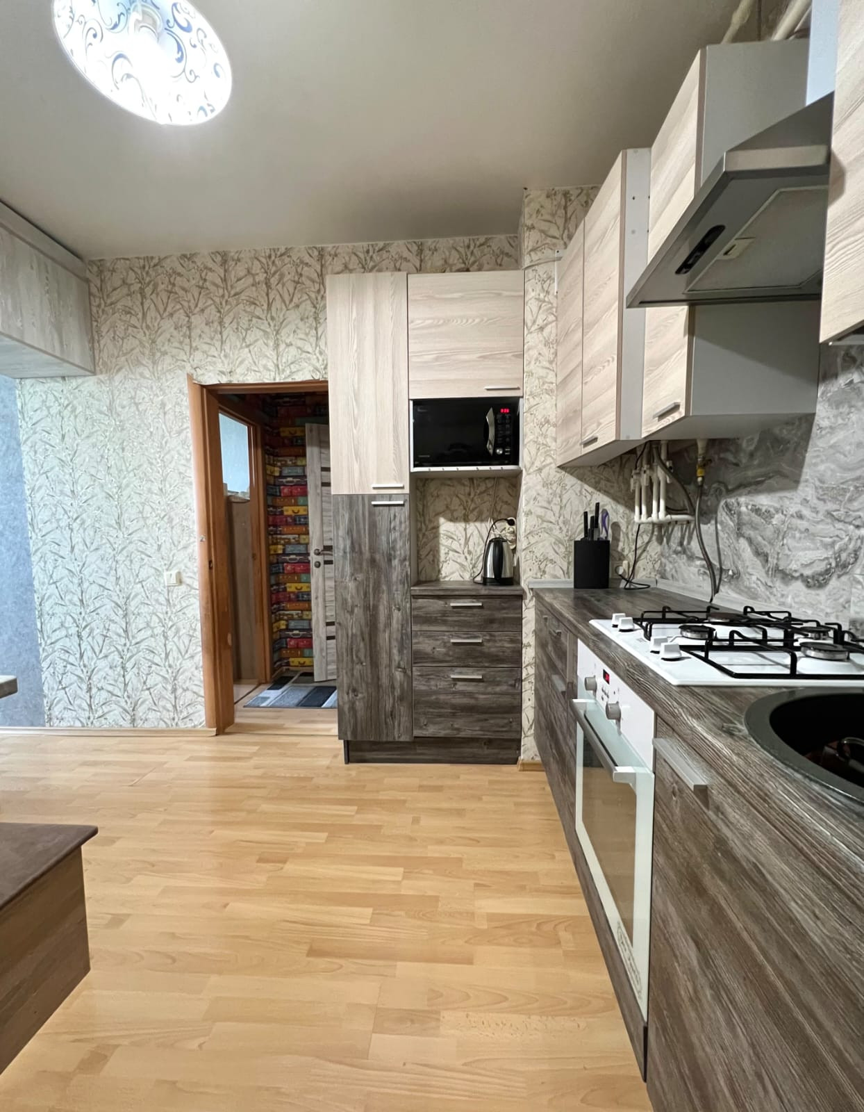 Квартира,оборудована встроенной кухней,и выделенной спальней,отдельная детская комната,с утеплённым балконом,полы ламинат,потолки натяжные, автономный газовый котёл,на отопление и горячее водоснабжение,теплый пол в ванной комнате и детской,свободна,более пяти лет в собственности