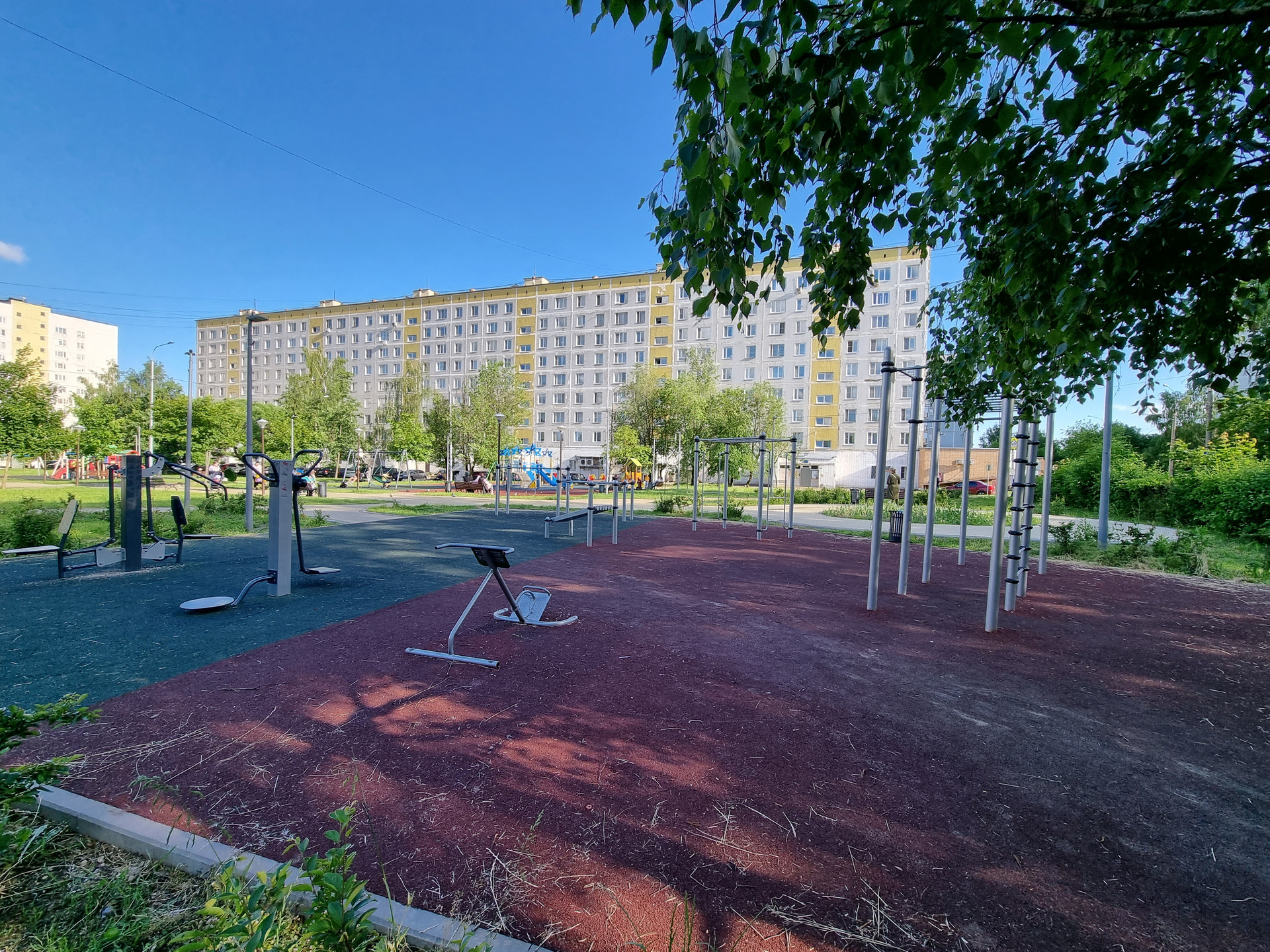 Во дворе несколько детских площадок для разных возрастных групп, спортивная площадка, беседка. Напротив дома школа, детский сад, поликлиники взрослая и детская, несколько супермаркетов, пункты выдачи Озон и Валдберис, в 2х минутах Дом культуры, проводятся различные кружки, секции, концерты.