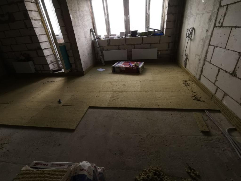 - Полусухая стяжка на полу с применением rockwool Флор батс.