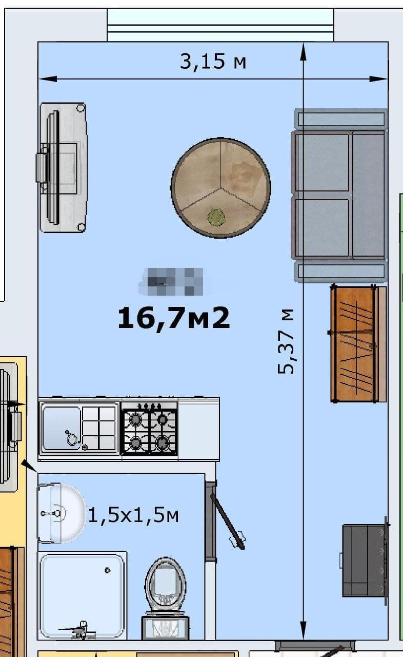 Общая площадь 17 м2