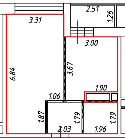Общая площадь 38 м2