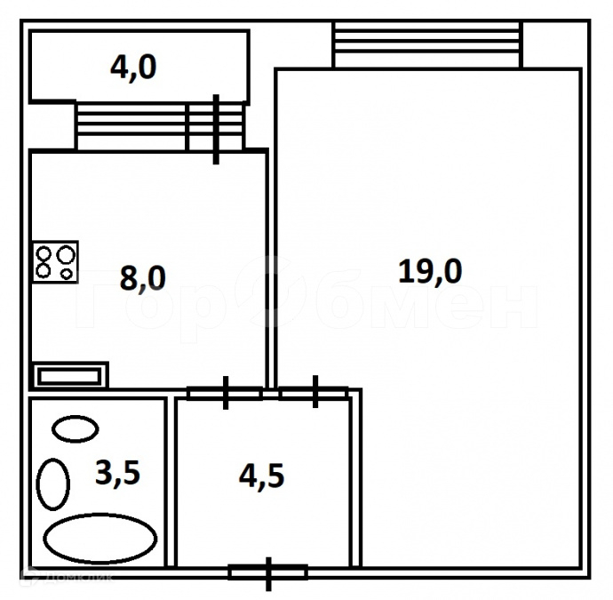 Жилая площадь 19 м2