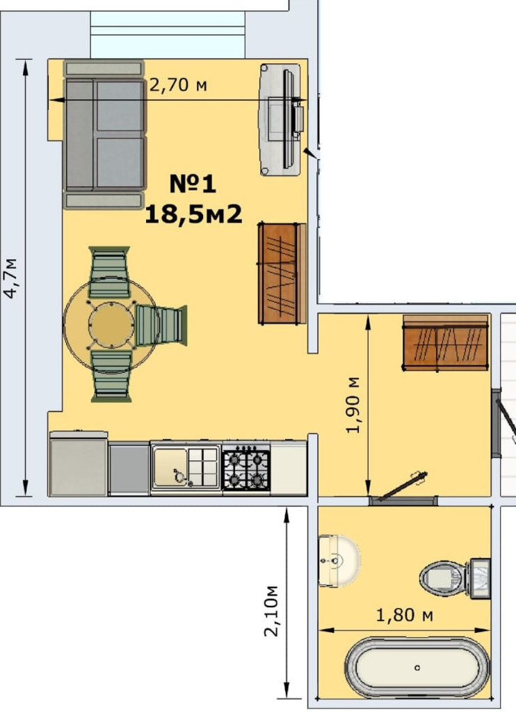 Общая площадь 18.5 м2