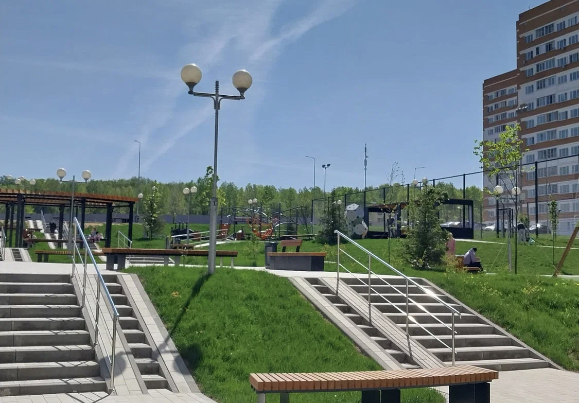 Через дорогу - парк. Красивая придомовая территория.
