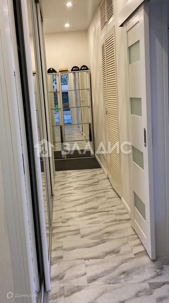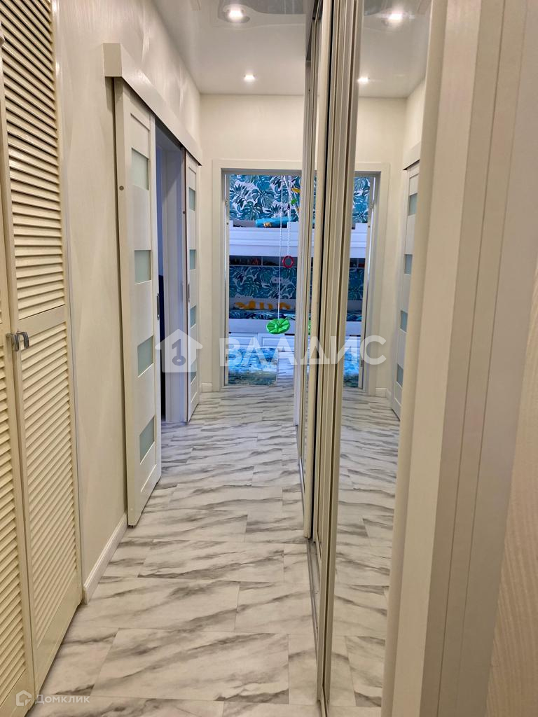 Огромный зеркальный шкаф в коридоре, где умещаются все вещи большой семьи.