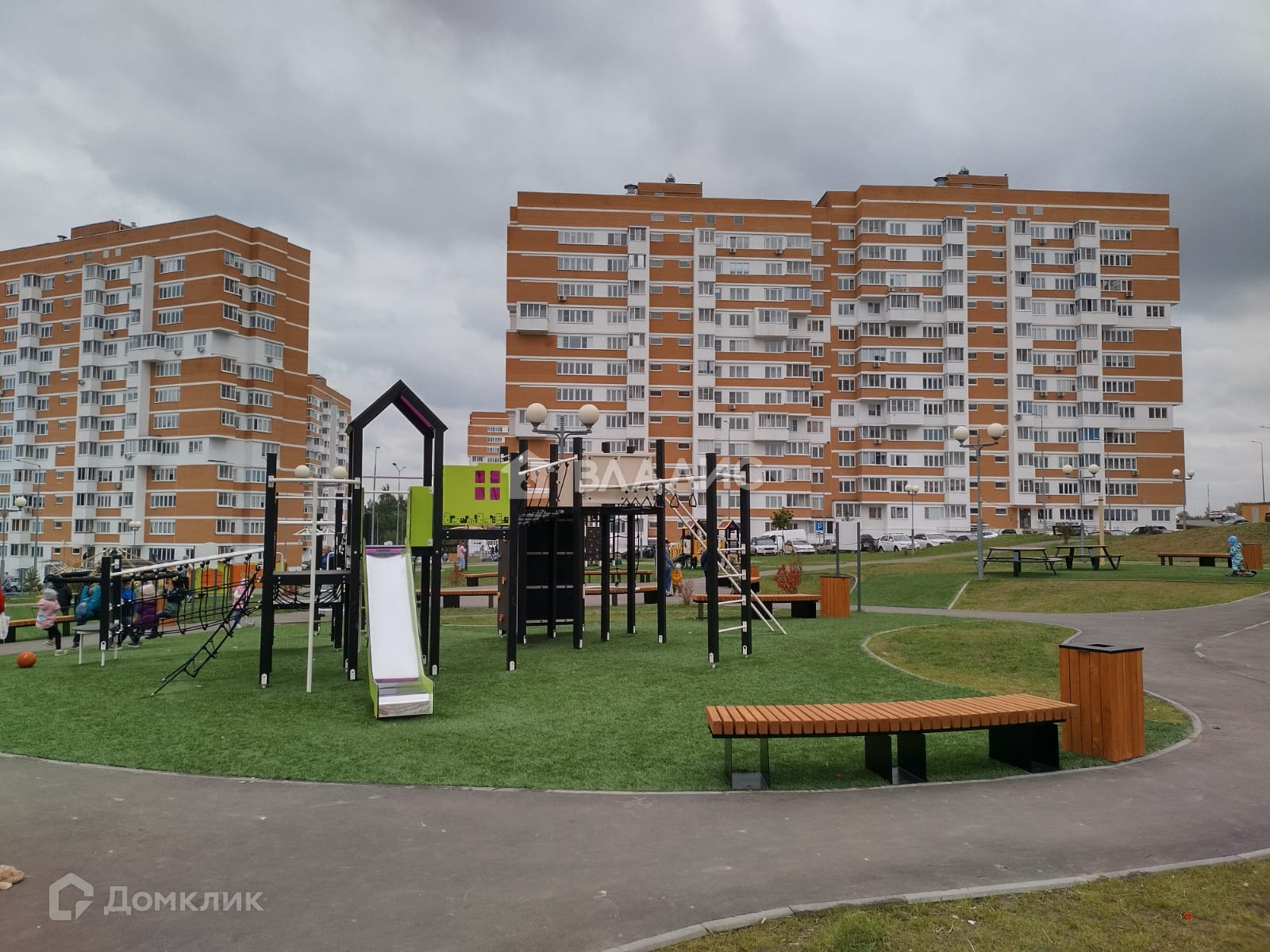 Прекрасная благоустроенная детская площадка во дворе.