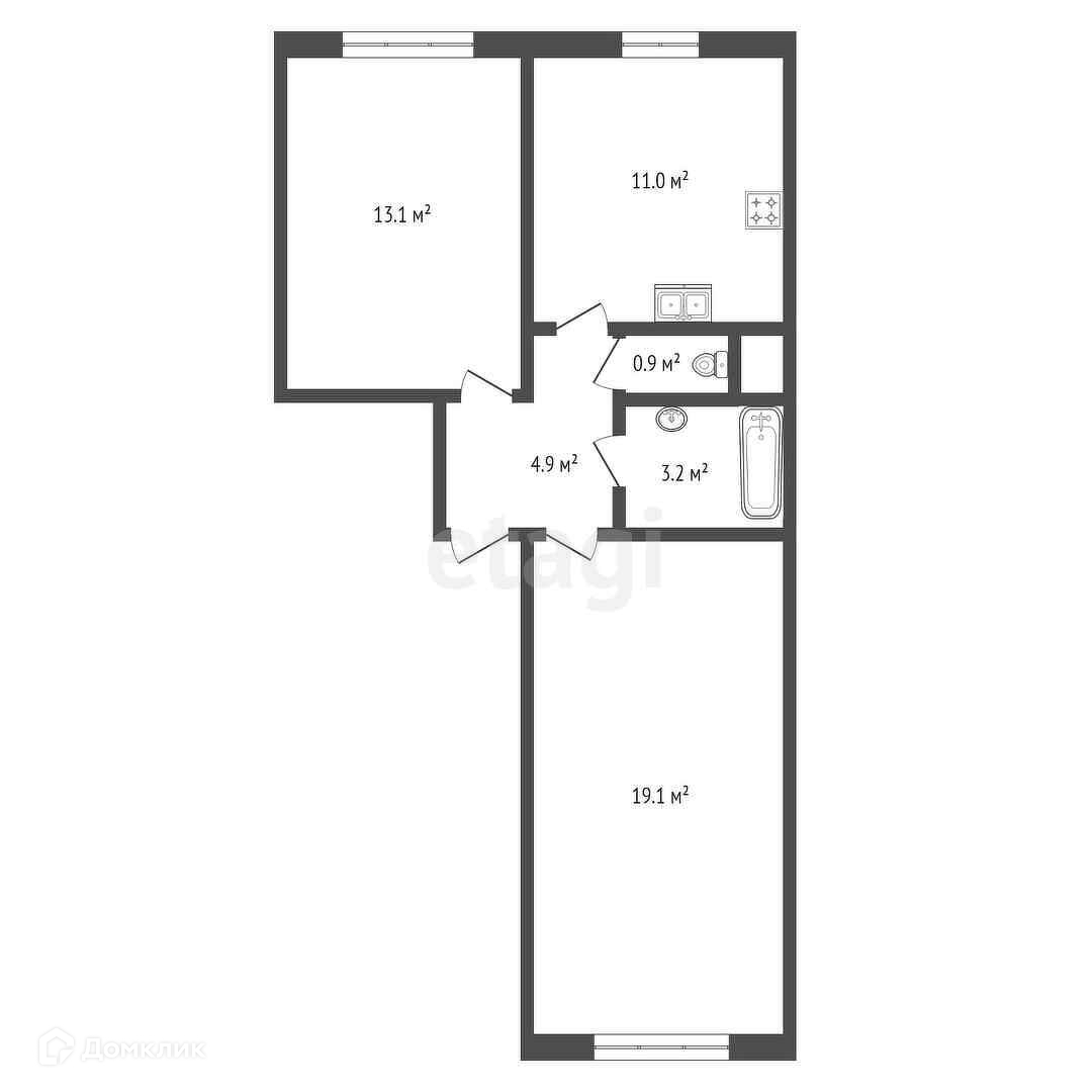- Две просторные комнаты - 19 и 13 метров.