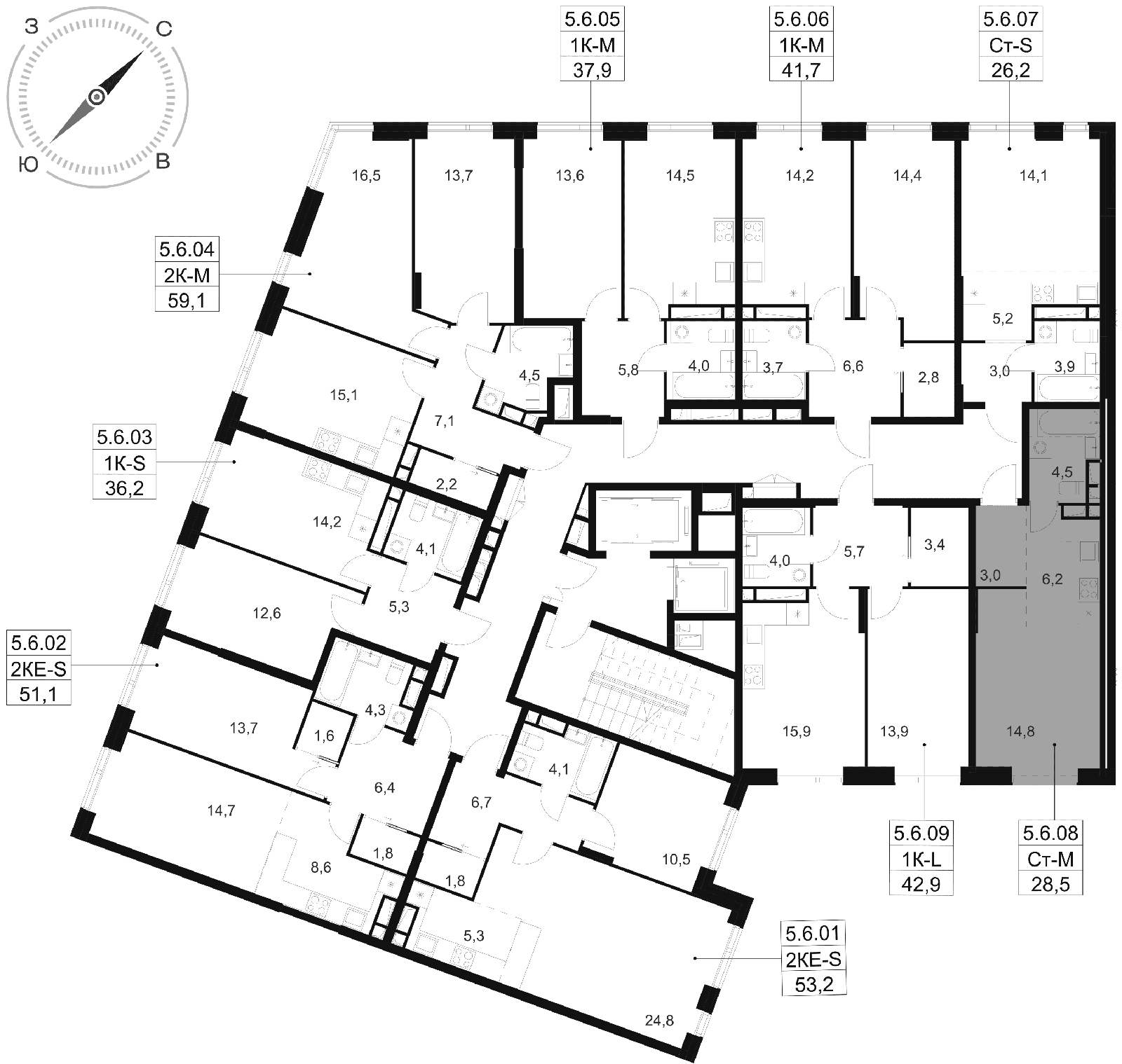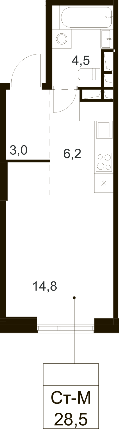 Общая площадь 28.5 м2