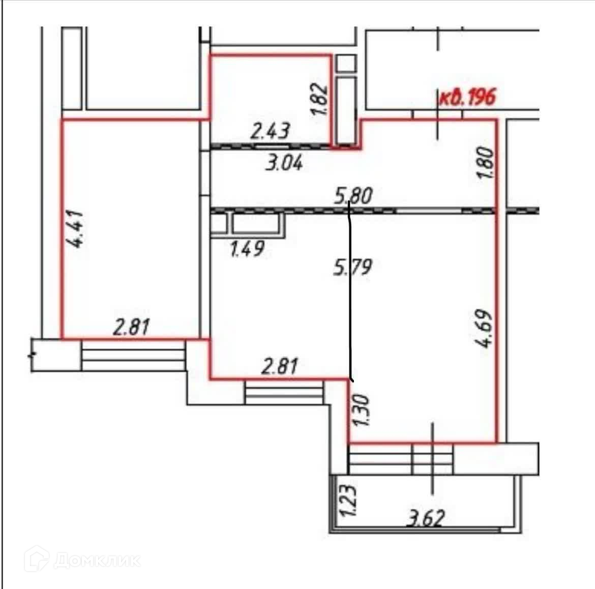 Балкон, лоджия 1 балкон