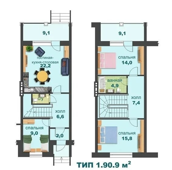 В ЖК "Спорт Таун"  предлагается на продажу  просторный таунхаус. Общая площадь 130 кв.м (с учётом мансарды). По егрн без учёта 3 этажа ( мансарды) 90кв.м
