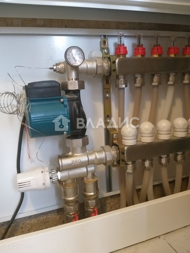 Автономное отопление (двухконтурный котёл), тёплый пол, центральное водоснабжение  (скважина в посёлке), санузел совмещённый, проведён интернет.