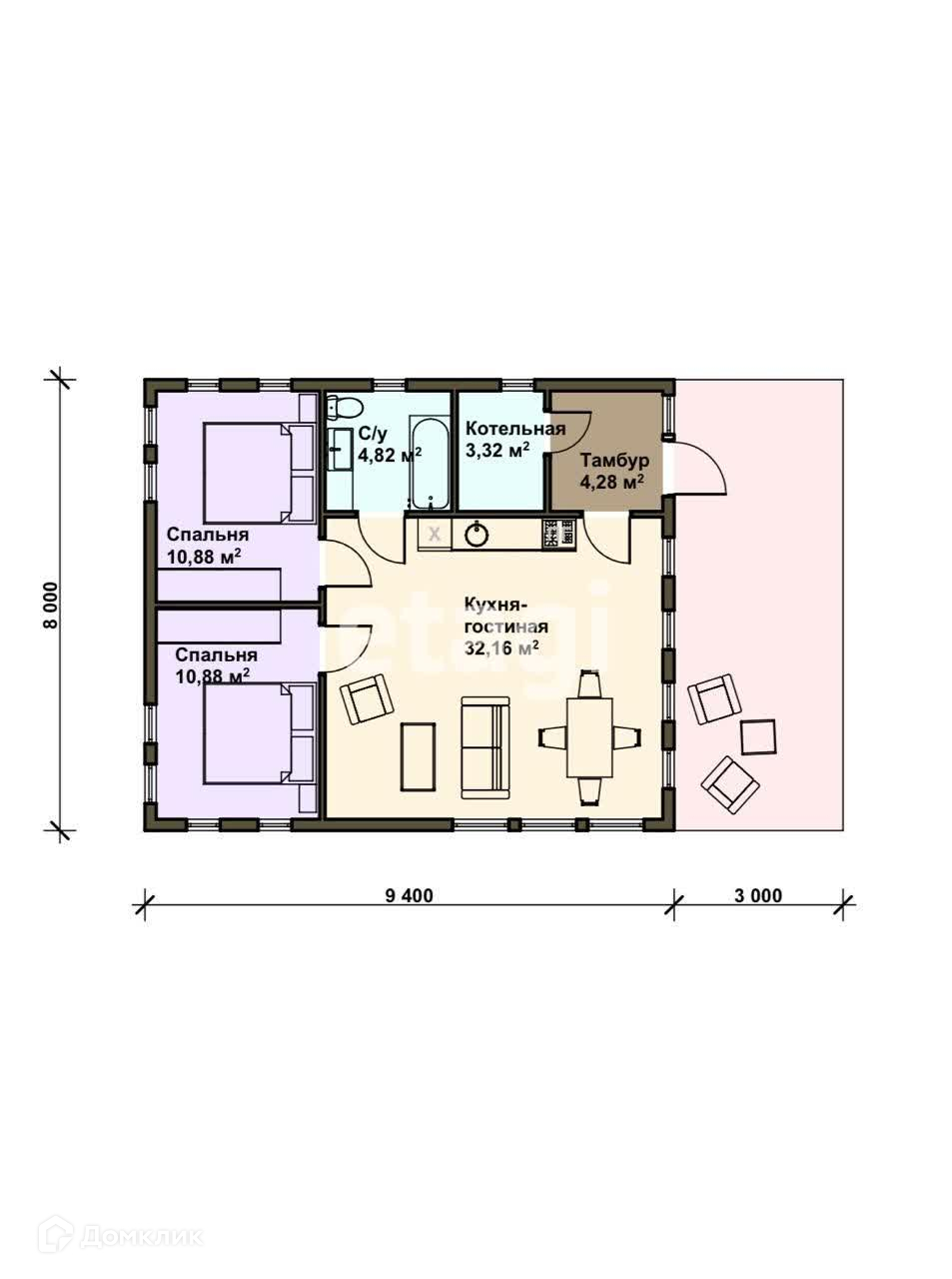 Общая площадь 96 м2