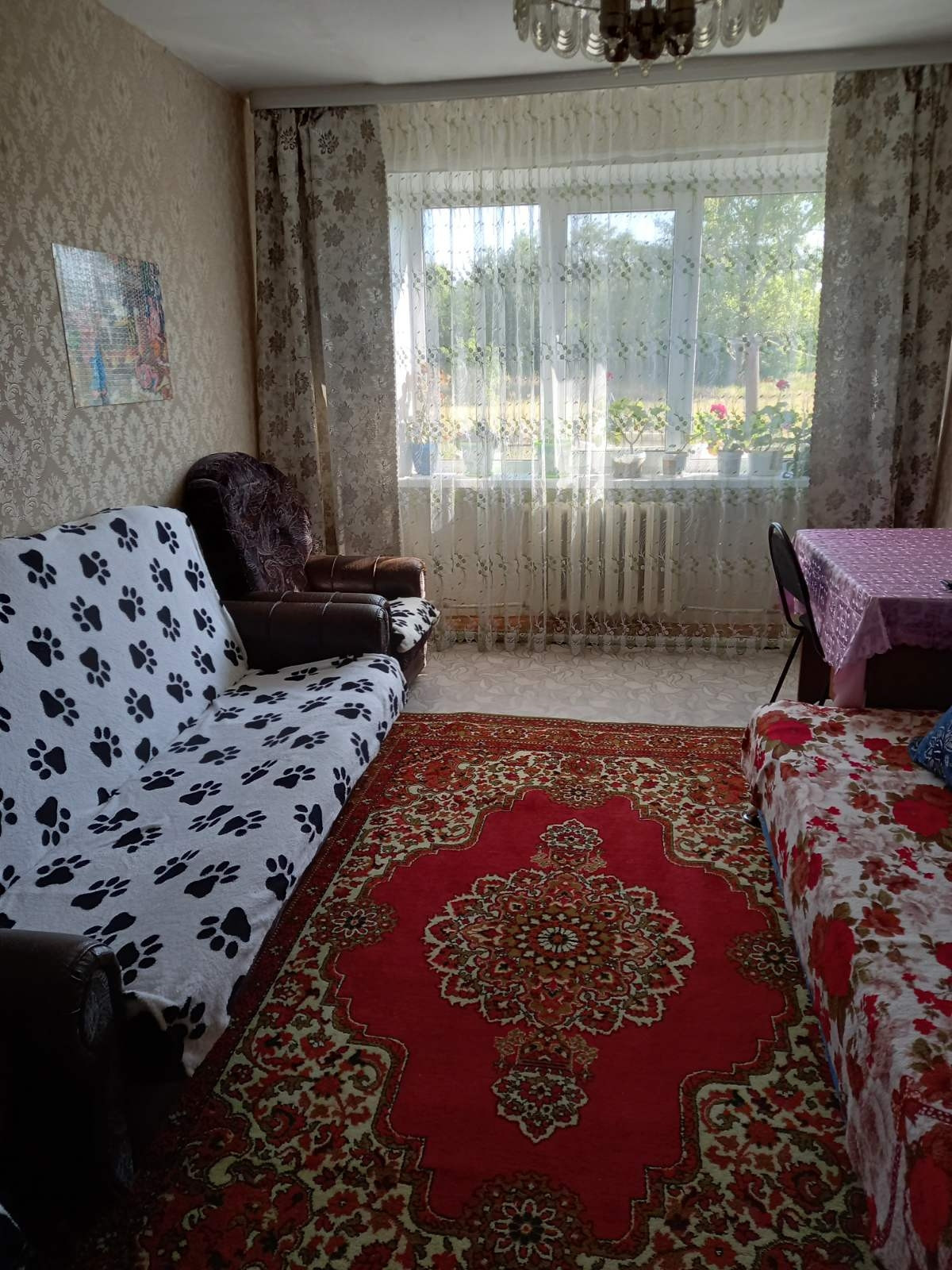 Квартира тёплая, установлены пластиковые окна, металлическая дверь, счётчики на свет и воду, замена отопительной системы, отопление центральное, под окнами, есть небольшой участок земли для цветов и овощей, тихие, мирные соседи.