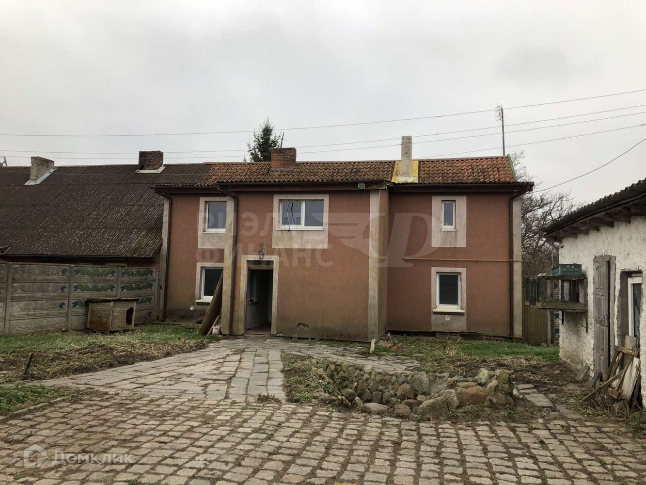 Продается жилой дом на ул. Центральная в п. Матросово, Гурьевский р-н Калининградской области. Дом 2-этажный, 2-уровневый, кирпичный. Общая площадь 223,2 кв.м, жилая 92.7 кв.м, кухня 15 кв.м. На первом этаже расположены: кухня, две большие комнаты, санузел; на втором этаже расположены три спальни, санузел, просторный холл, площадь которого позволяет установить бильярд или настольный теннис. Отопление газовое автономное. Установлены стеклопакеты. Коммуникации: электроэнергия – есть, газ - природный, канализация бытовая – cептик. Земельный участок 37.1 соток . На участке есть гараж. В поселке есть детский сад, продуктовые магазины,  детей в школу п. Храброво доставляет школьные автобусы. Регулярно ходят автобусы №116, №145. В шаговой доступности лес. Из Калининграда ехать 15 минут. Под ипотеку не подходит.