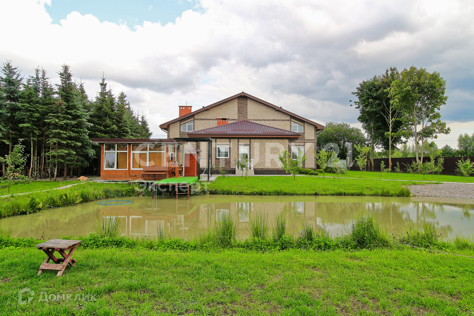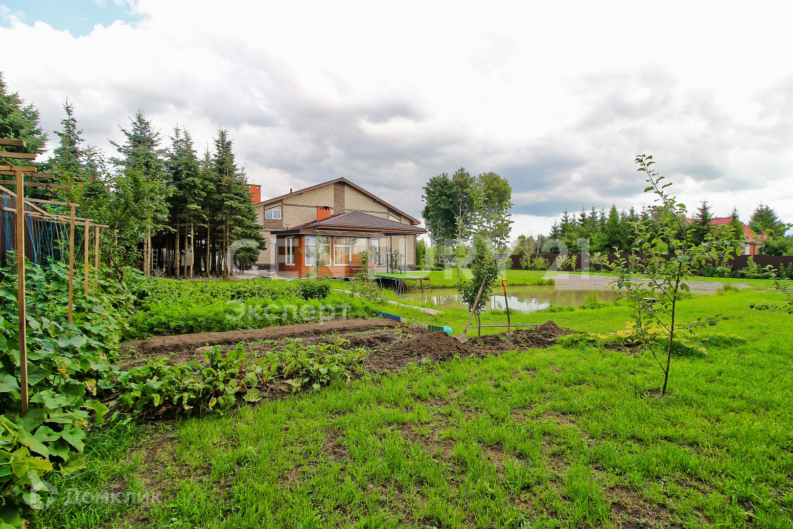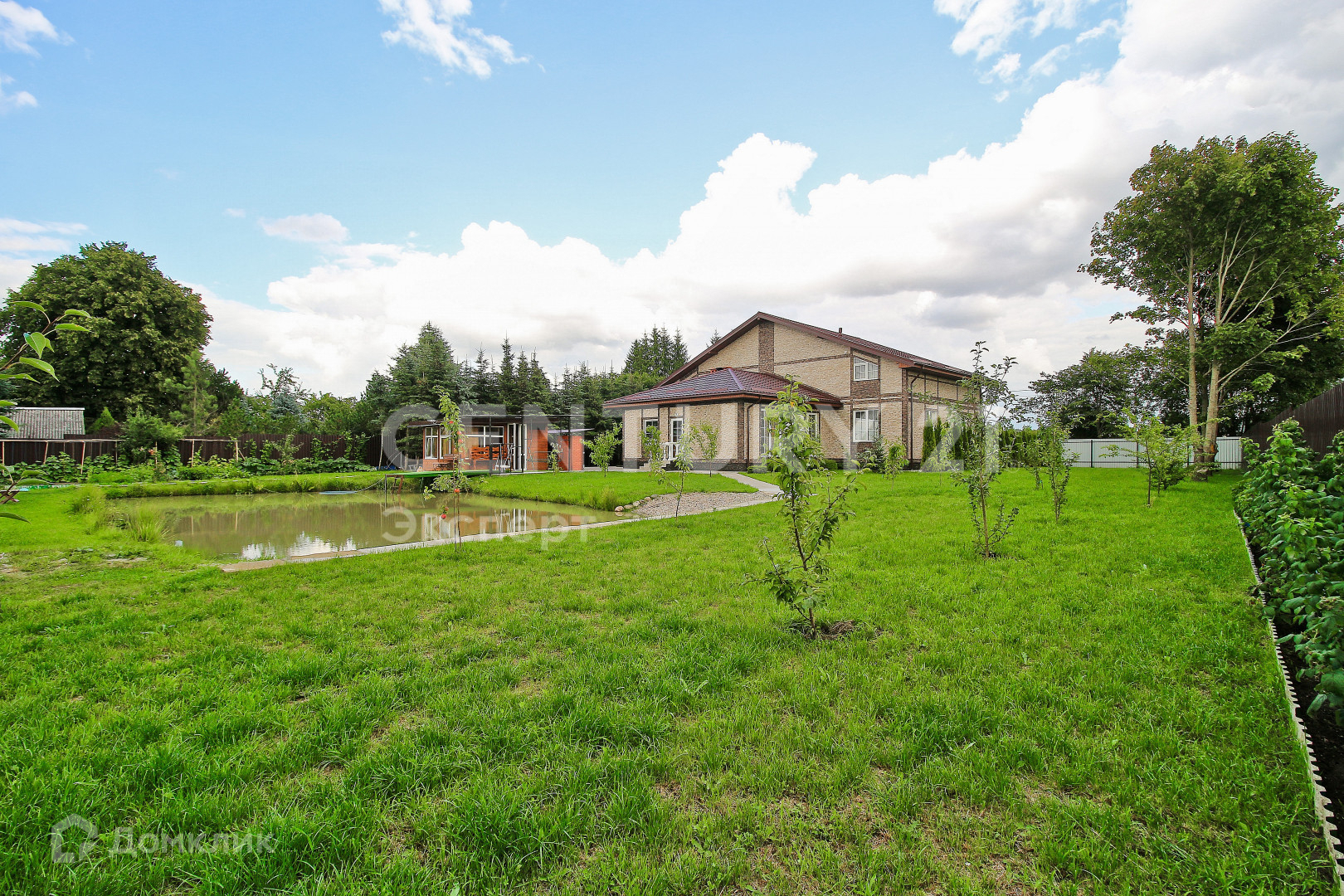 На территории расположена зона барбекю с летним домиком, гостевой домик, постройка под хоз. инвентарь и технику, крытая парковка на 2 авто, теплица. Сад с плодовыми деревьями: яблони, груши, персик, много плодовых кустов. Все плодовые растения правильно высажены с учетом климатических условий, уже плодоносят. Небольшое озеро с разведенной рыбой (сазан и карп).