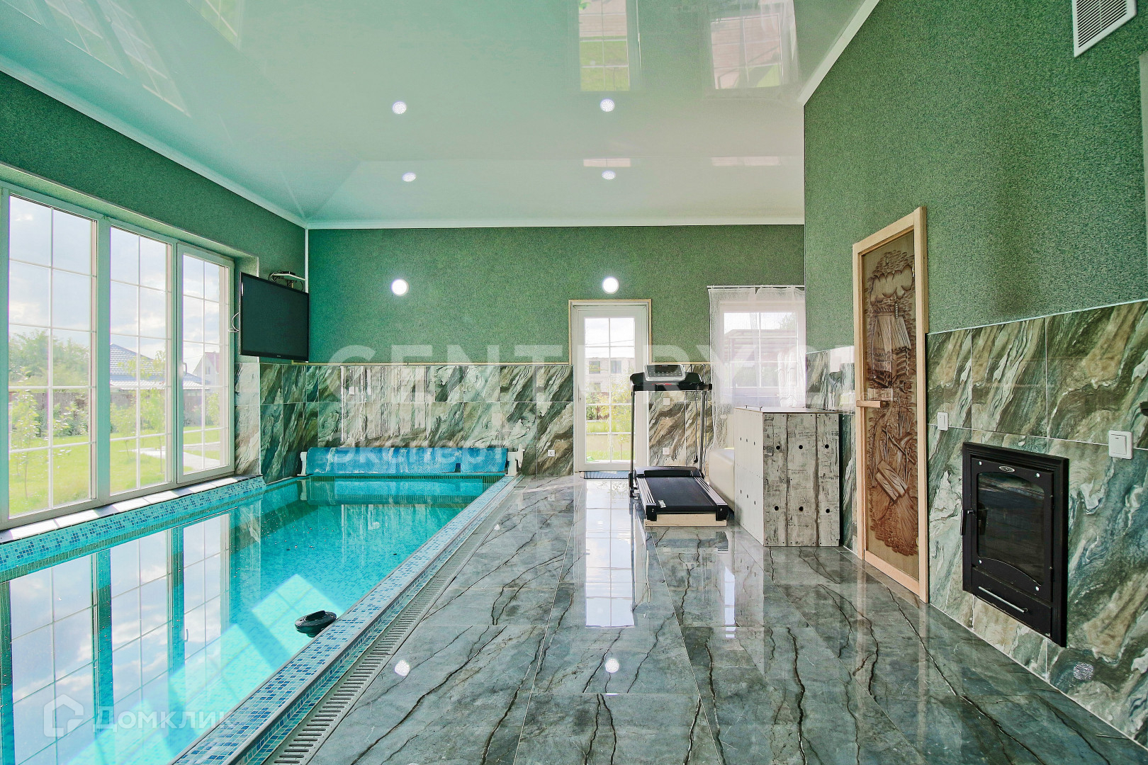 1 этаж: уникальный зал со вторым светом 70 кв.м., большая кухня 15 кв.м. с выходом на террасу, гардеробная и прихожая, хоз. блок, комната 22 кв.м., два санузла, сауна и бассейн.