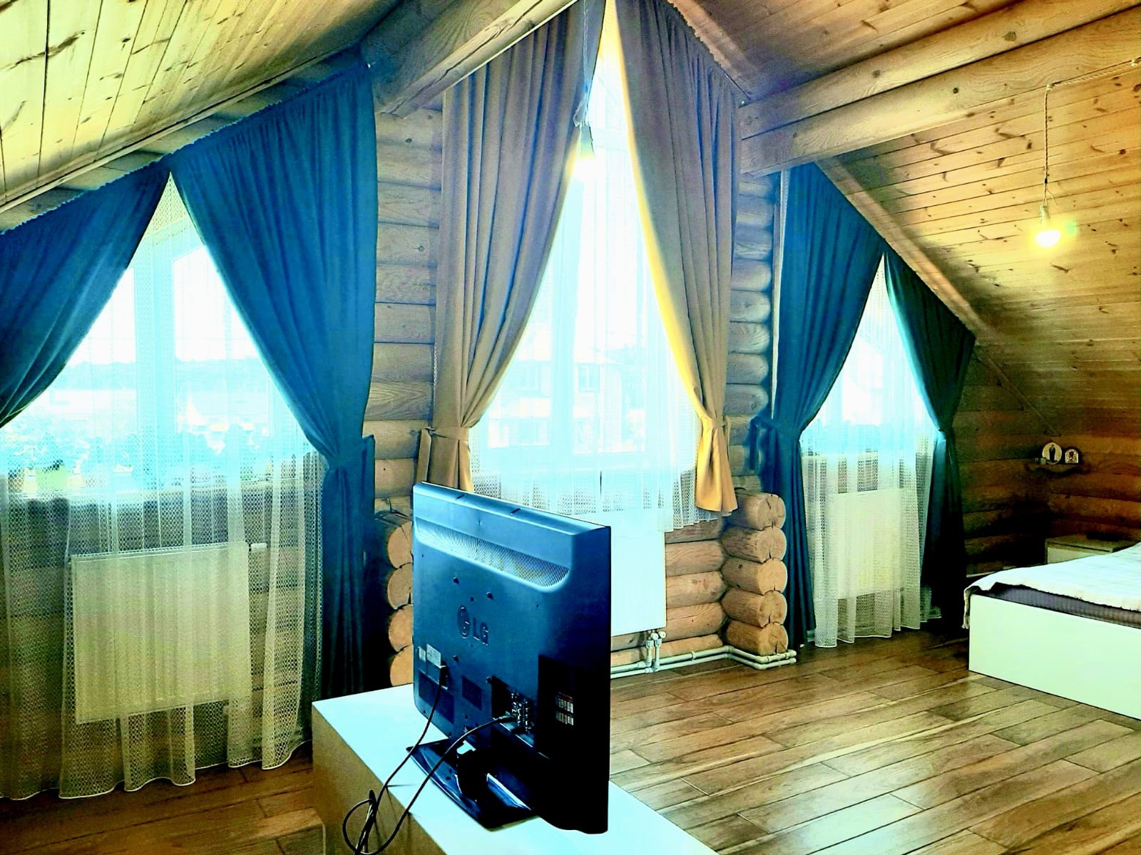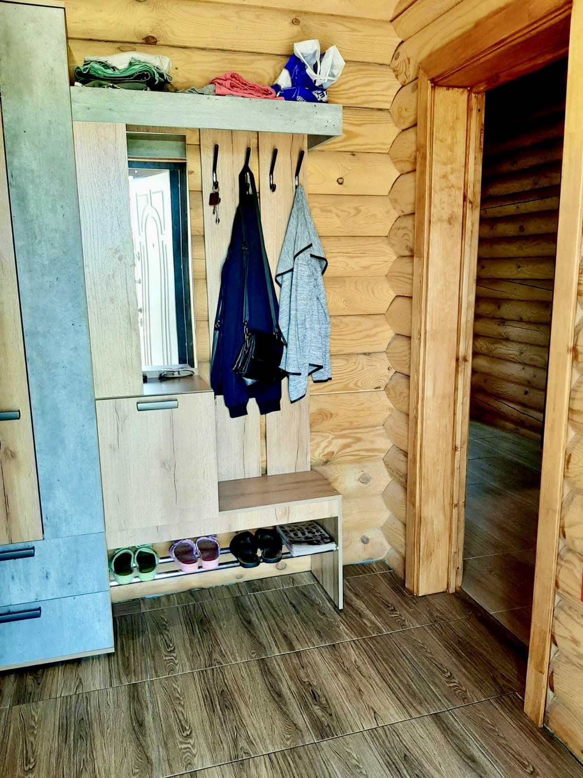 Гостевая комната, коридор, прихожая, кухня-гостиная с выходом на большую террасу (на террасу проведено освещение), санузел. Теплый пол по всему этажу.