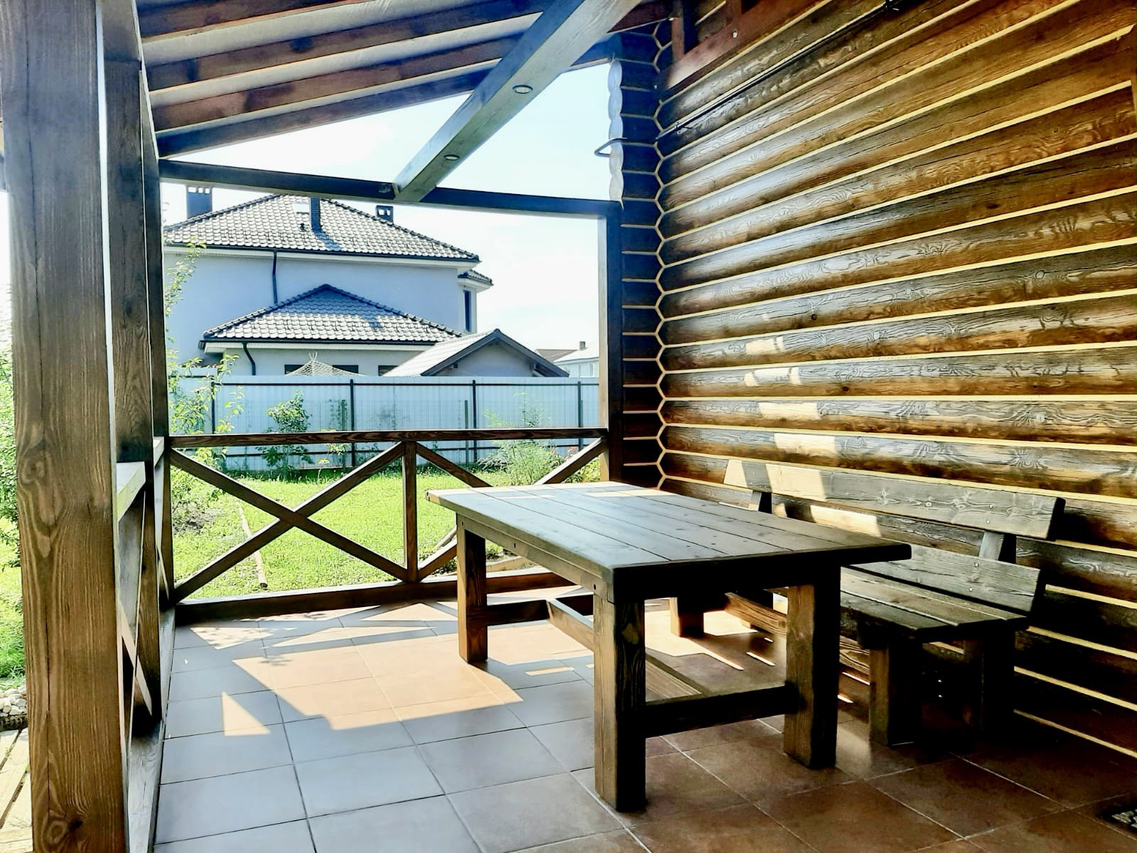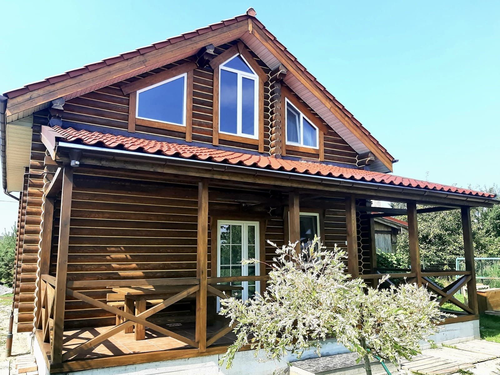 Дом построен из качественного бруса, обработан, покрашен, теплый шов.