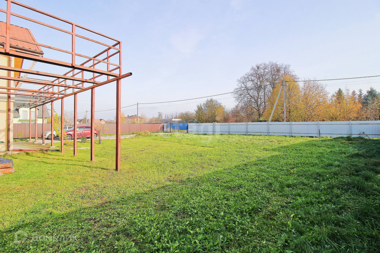 Дом расположен на второй линии от центральной дороги, тихая улица без постороннего шума. Все участки рядом застроены, очень хорошие соседи.