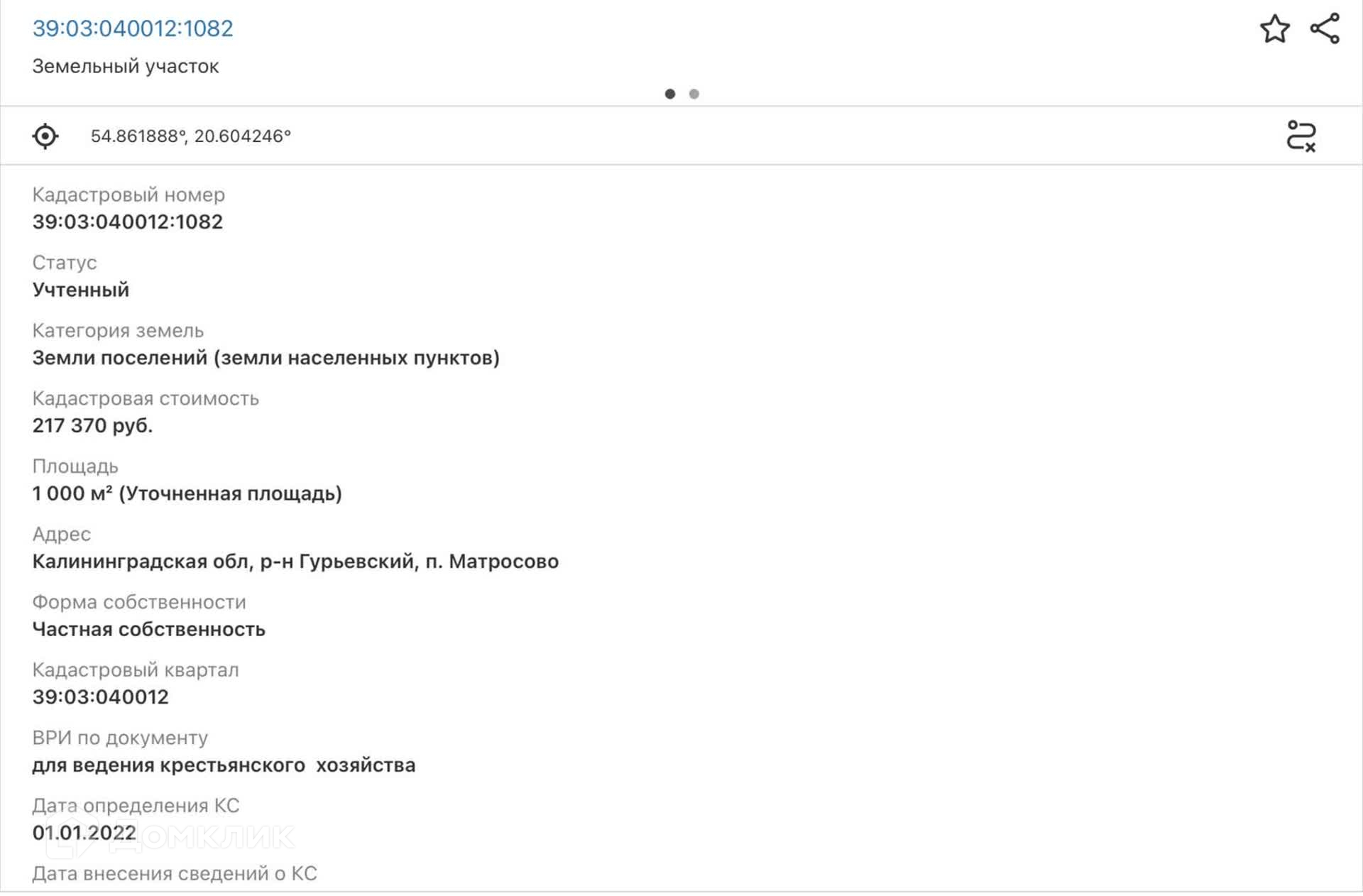 Продам земельный участок Гурьевский район, поселок Матросово.