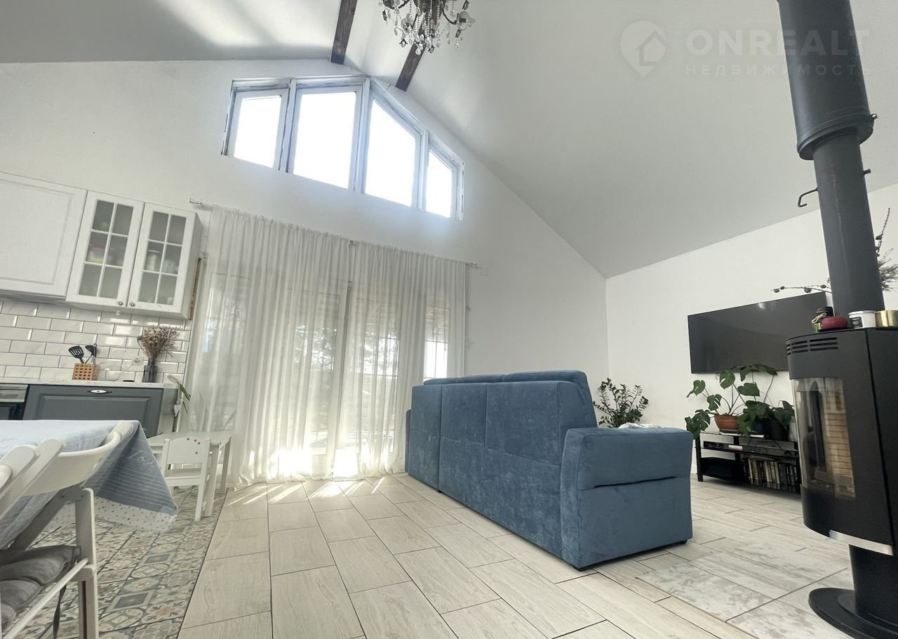 Продуманная планировка включает в себя просторную кухню-гостинную со вторым светом высота 5 м., 3 спальни, прихожую, ванную комнату, котельную и террасу.