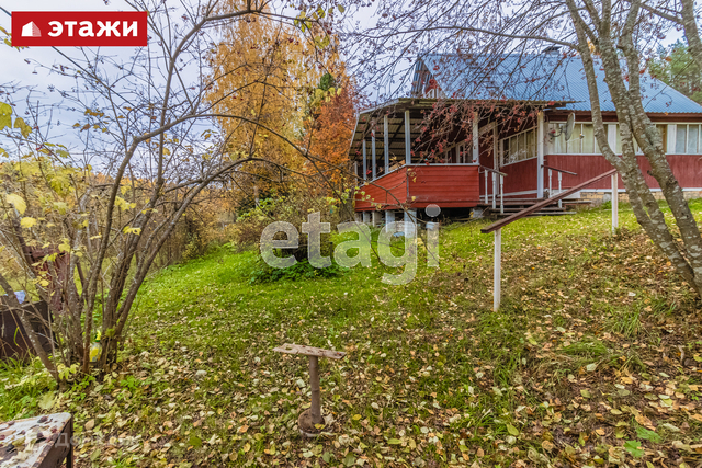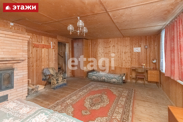- жилой 2-этажный дом из бруса с печным отоплением, обшитый доской (общая площадь 82,9 кв.м., три комнаты, кухня, огромная веранда, направленная в сторону реки). Электричество, летний водопровод, колодец. В доме туалет, место для септика подготовлено. Электричество проведено на 15 кВт.