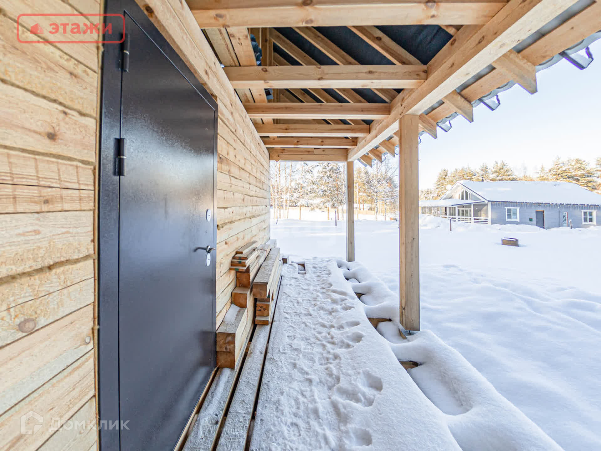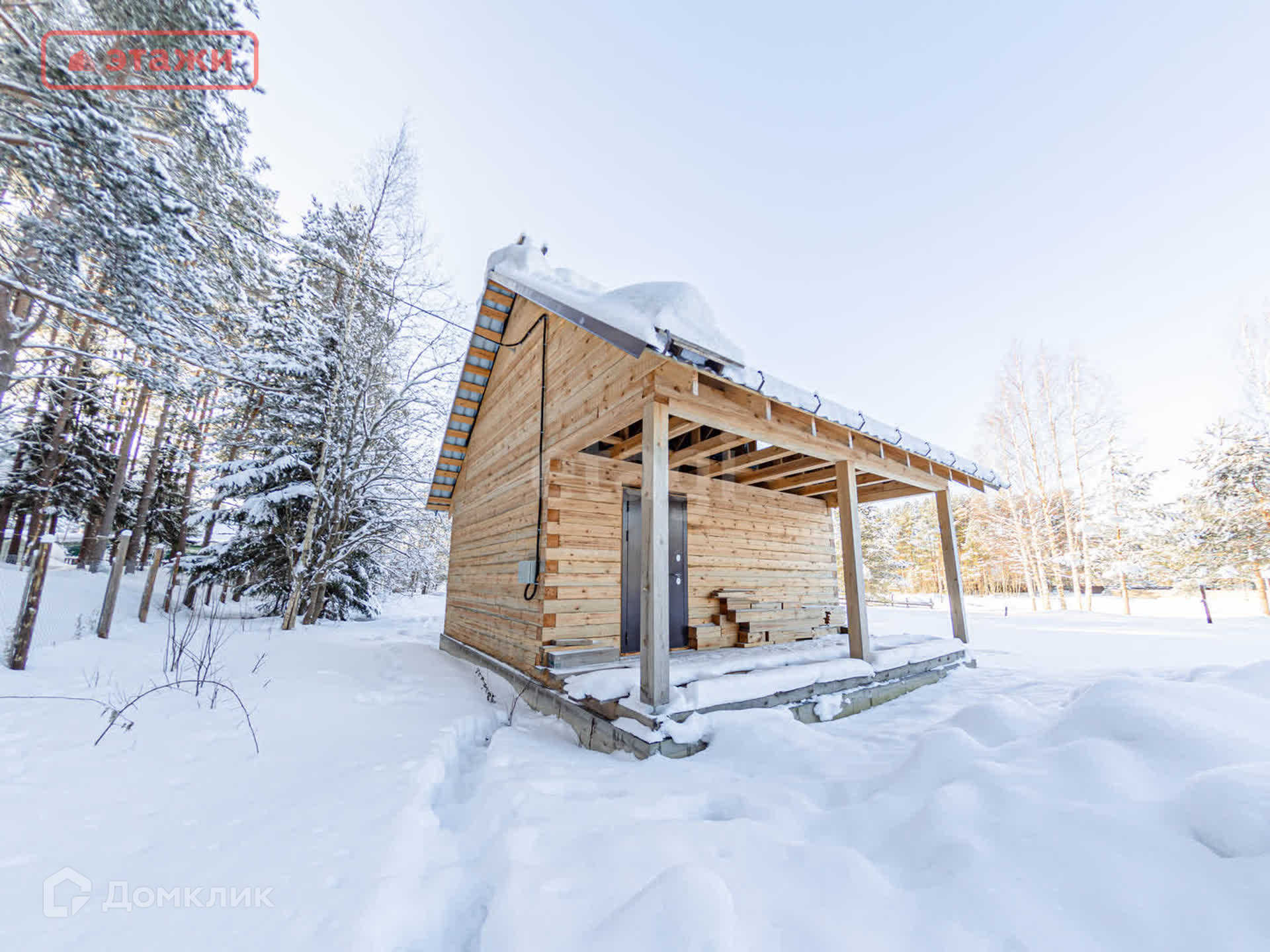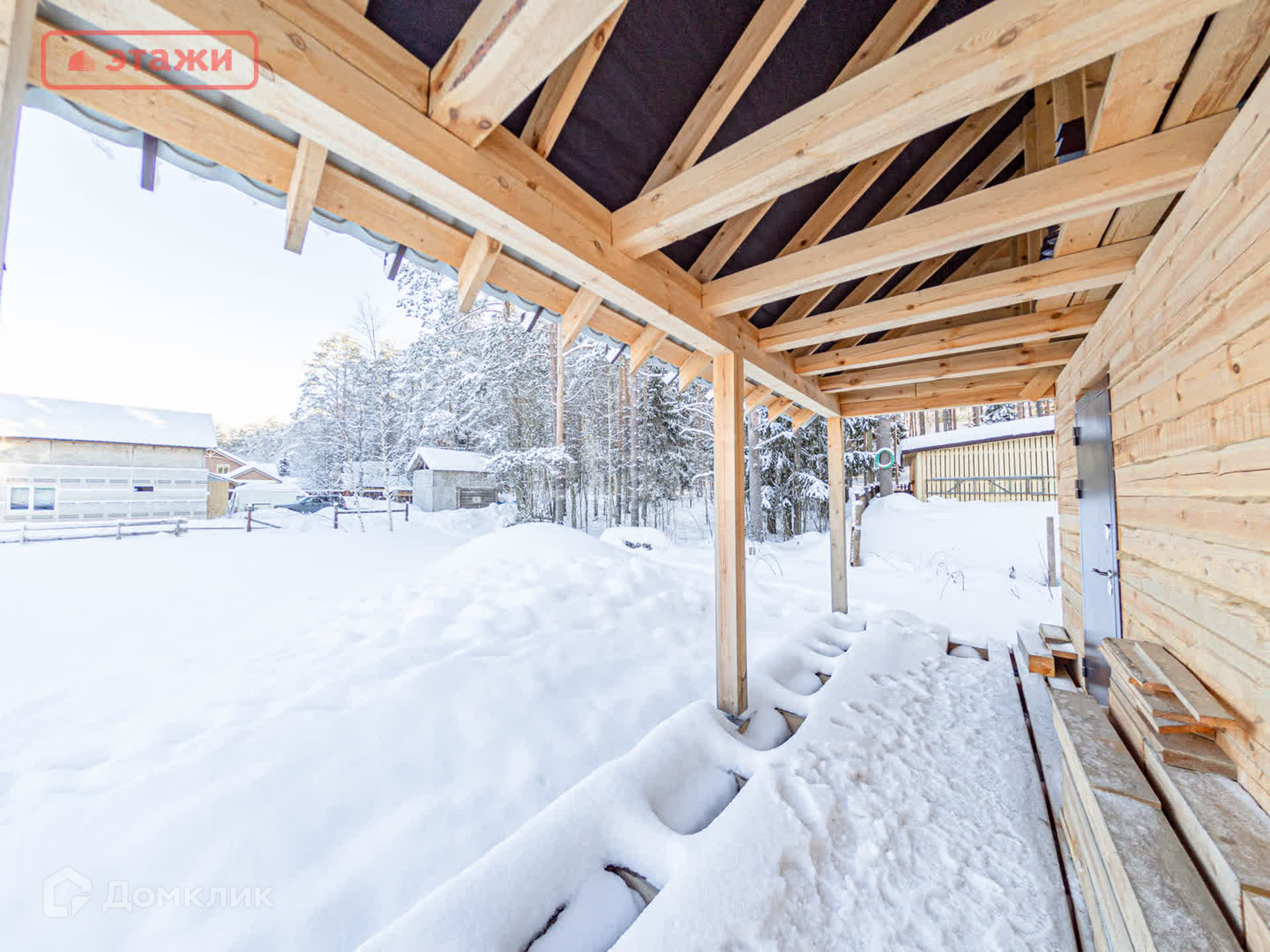 Выполнен из бруса диаметром 150 мм.