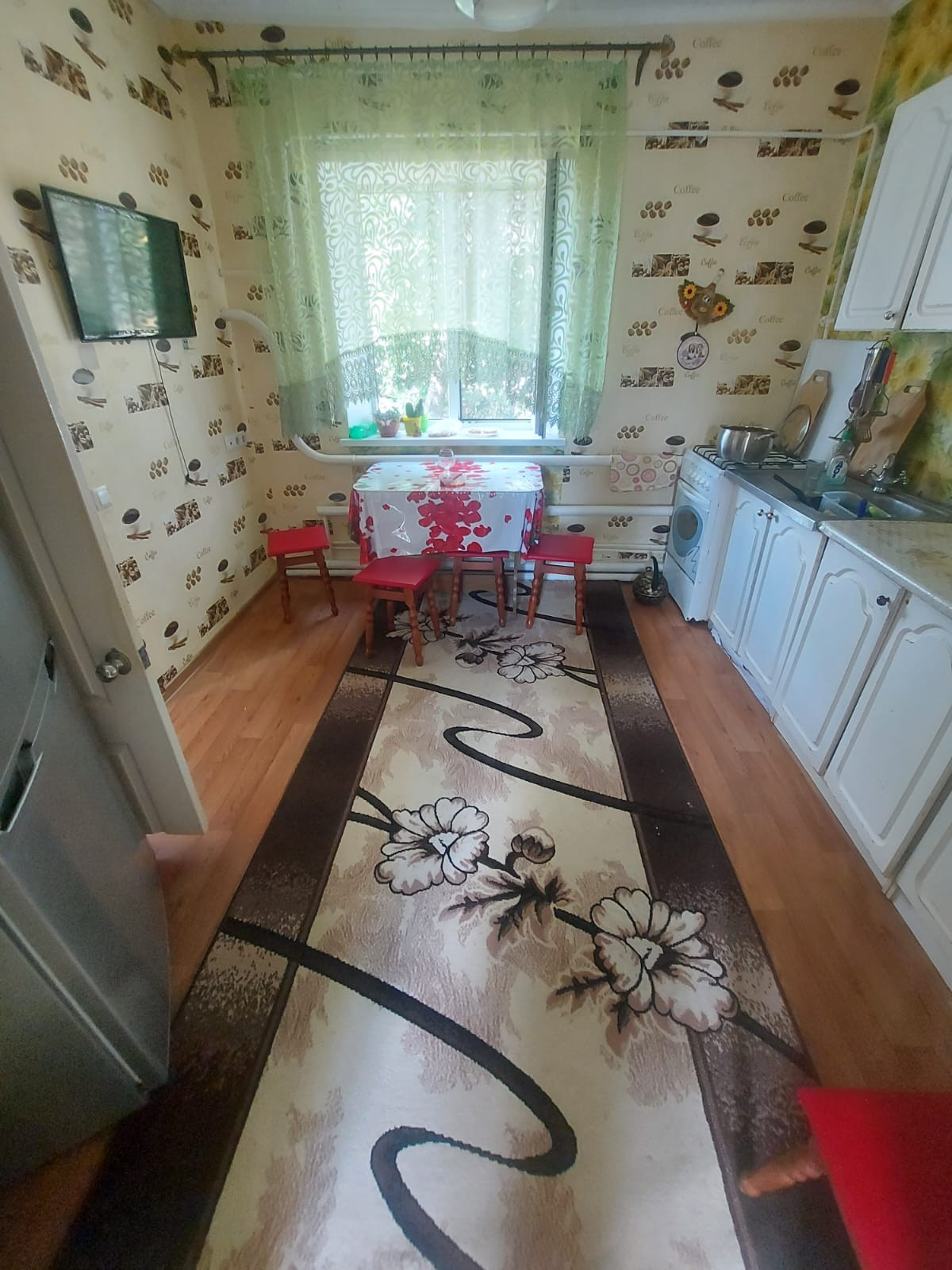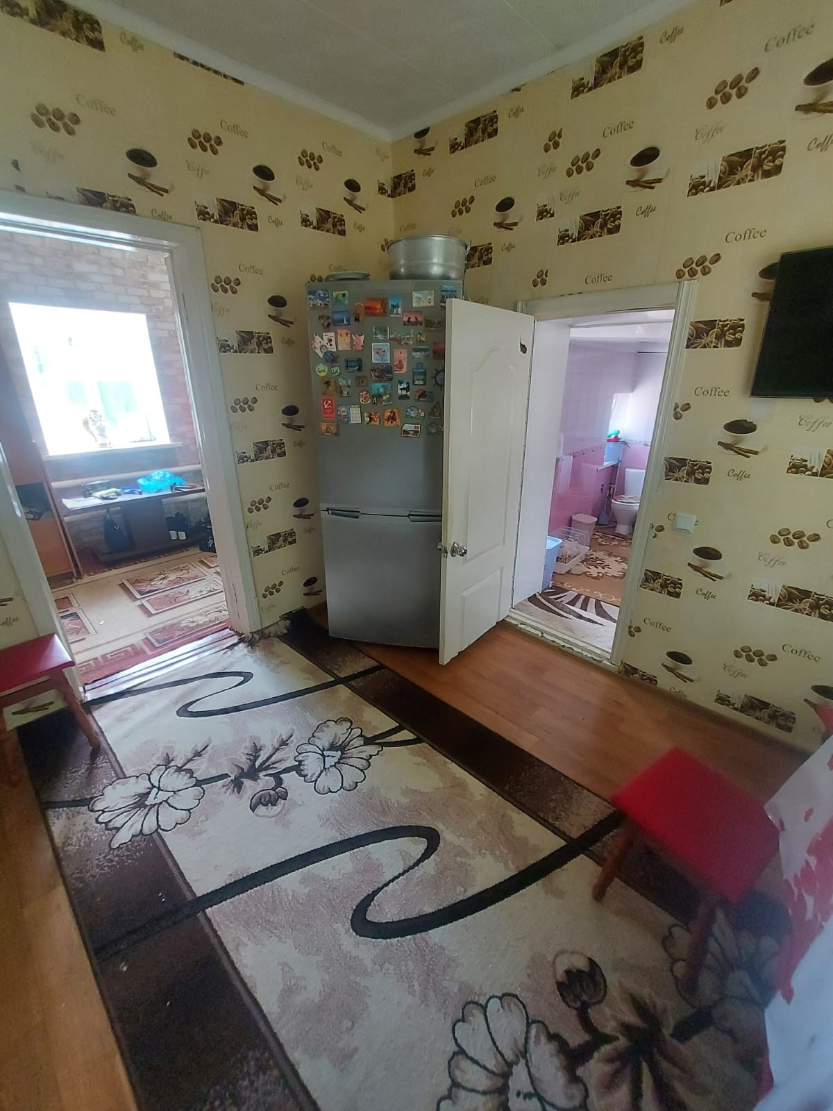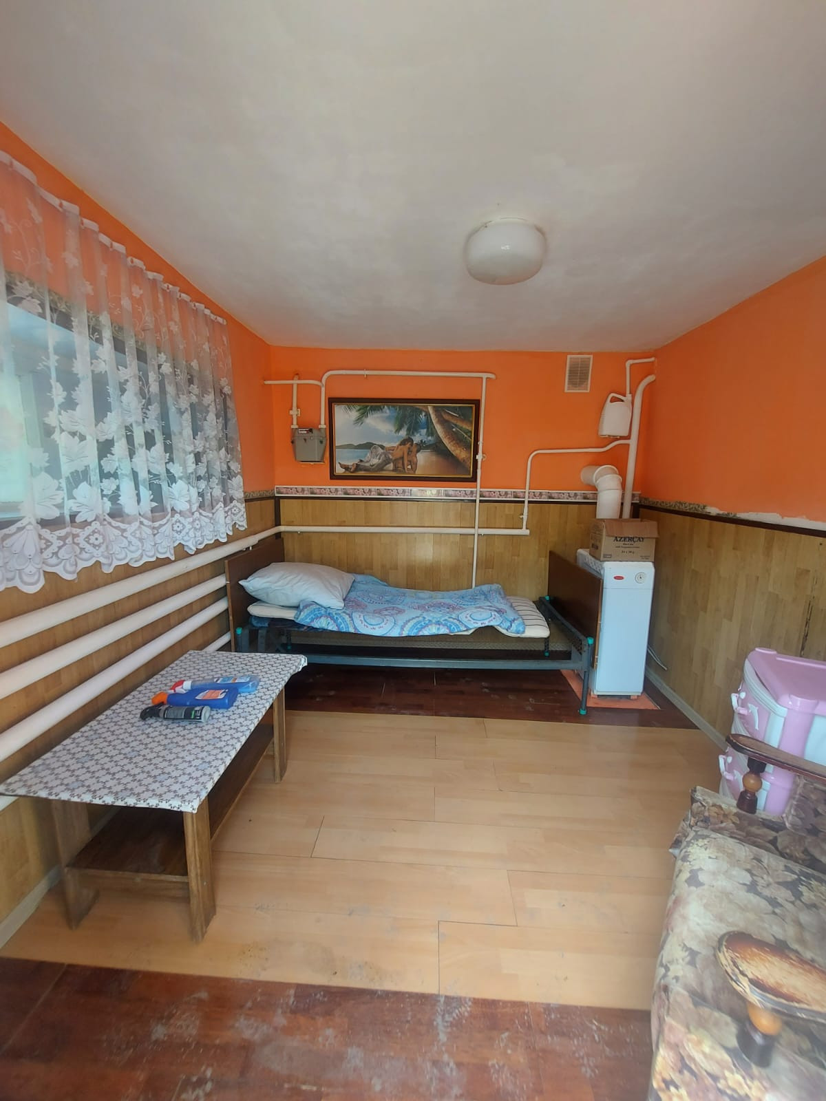 Газ, отопление – котел, высокие потолки.
