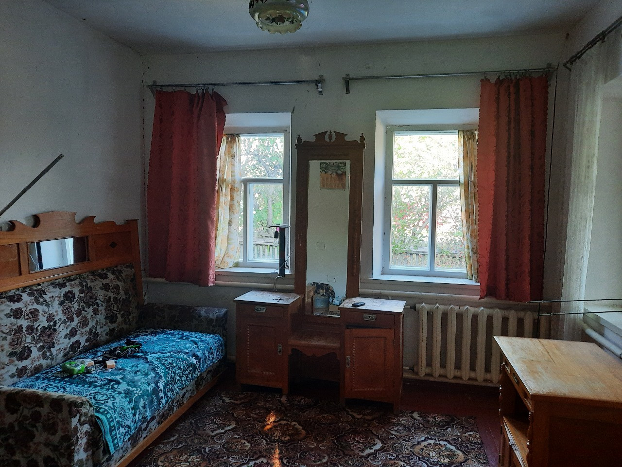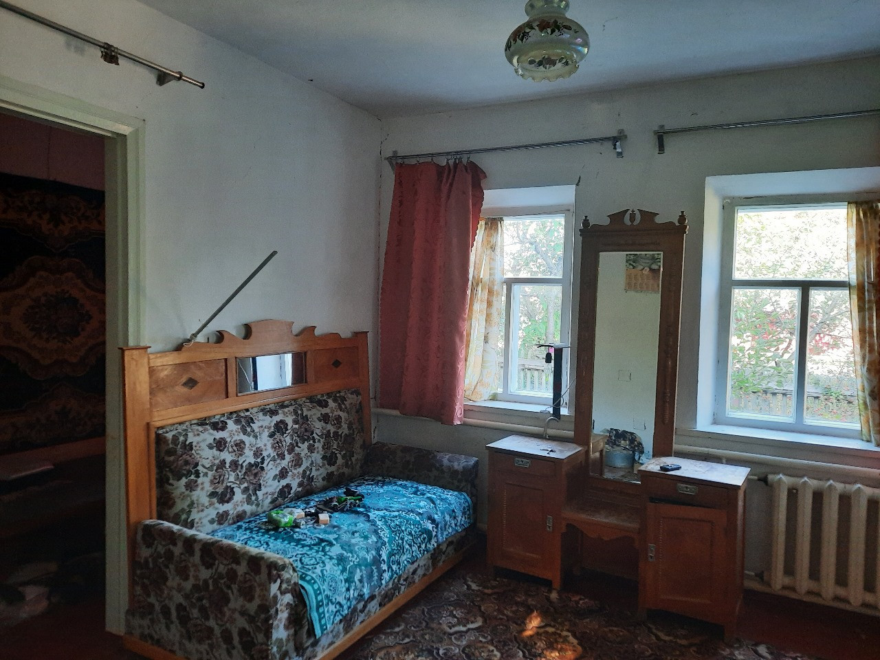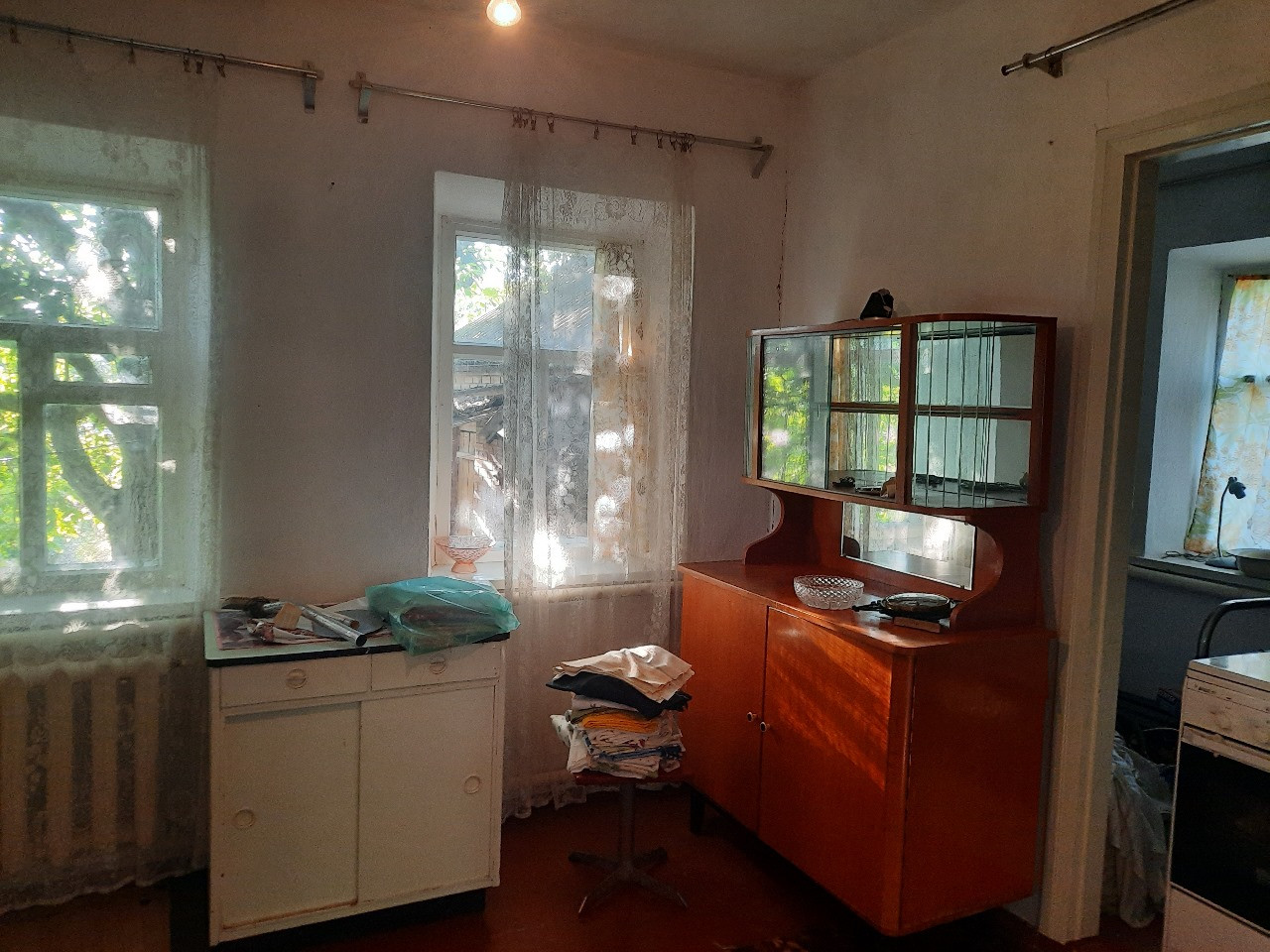 В доме 2 изолированные комнаты, 2 проходные, кухня, коридор. Пол деревянный, стены окрашены.