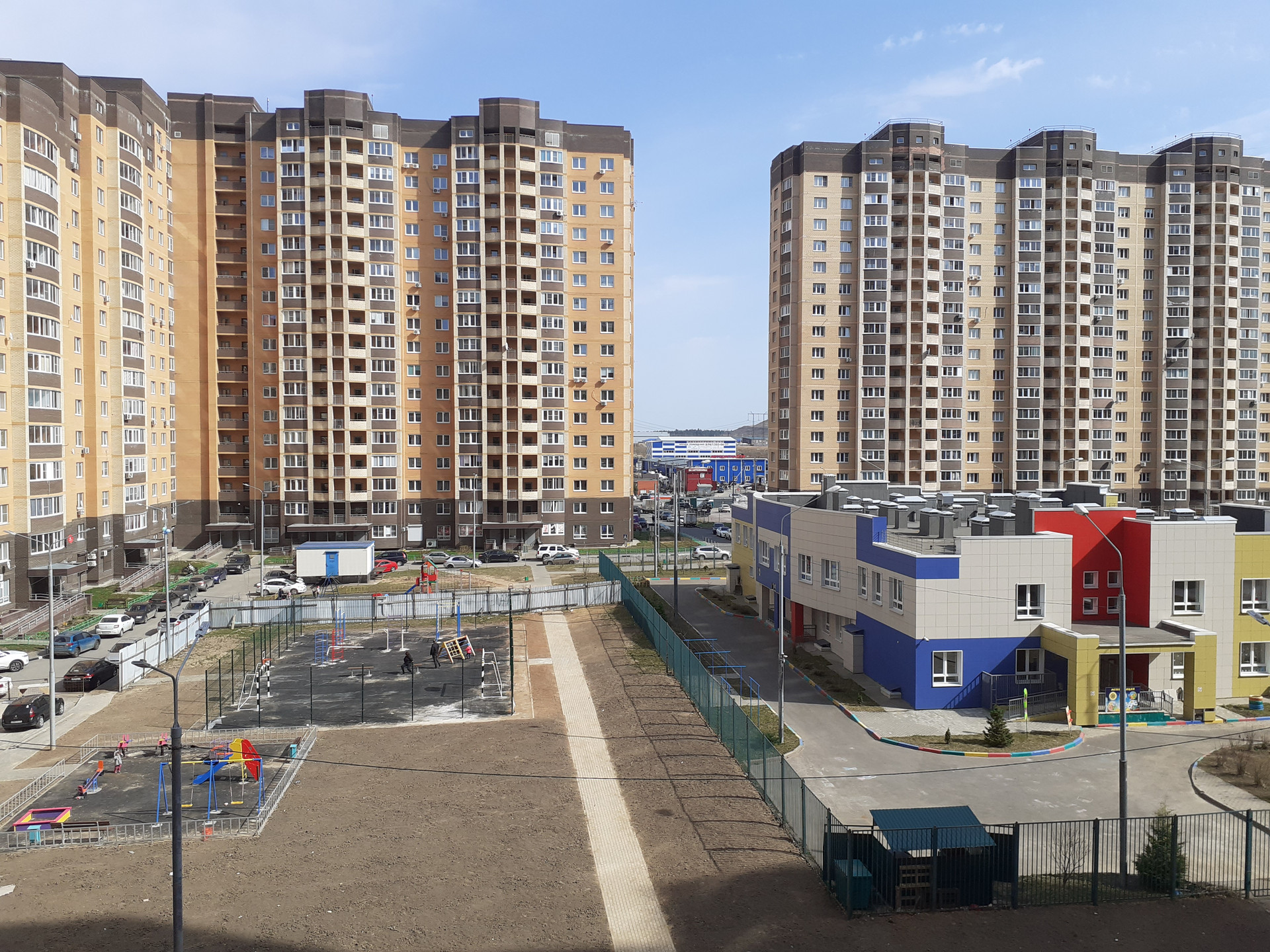 На территории ЖК уже заселено пять корпусов. Развитая инфраструктура: магазины, рынок строительных материалов, салоны красоты, прочие торгово-бытовые организации, детская и спортивные площадки, работает детский сад «Светлячок». Школа в пос. Пирогово. Через дорогу - современный теннисный клуб: 7 закрытых кортов, 10 открытых кортов. В пешей доступности (примерно 1 км.) - Пироговский лесопарк и Пироговское водохранилище с благоустроенными пляжами, яхт-клубом, кафе и рестораном. На транспорте: ледовый комплекс «Арена Бобры», крупные ТРЦ.