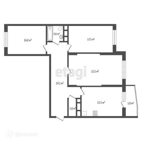 Общая площадь 96.5 м2