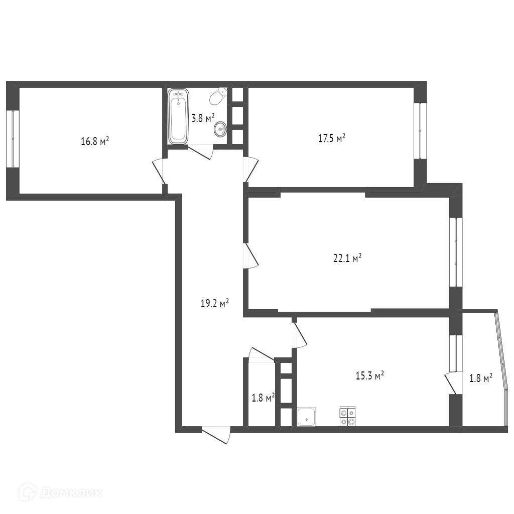 Отличная планировка: просторная кухня переходит в большую гостиную 37.4 кв.м. + 2 изолированные комнаты. Лоджия из кухни, есть гардеробная. Дом монолит-кирпич, квартира очень теплая.