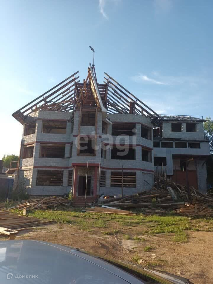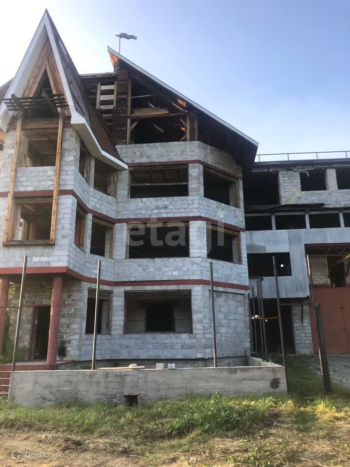 Продается коттедж, построенный в 2018 году. Толщина стен - 60 см. Дом имеет три этажа площадью по 480 квадратных метров. На участке площадью 13 соток проведено межевание. В доме есть две скважины, одна из них располагается внутри дома. Электричество подключено с напряжением 220 - 380 вольт. Строительство дома выполнено до конструктивной готовности, осталось завершить установку дверей, окон и внутреннюю отделку. На территории двора располагается большой гараж для инструментов, также в доме есть два гаража с ямой общей площадью 120 квадратных метров. Кроме того, на участке имеется отдельный дом для работников. Возможен торг.