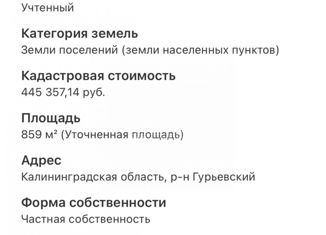 Код объекта: 957754. ПРОДАЁТСЯ ЗЕМЕЛЬНЫЙ УЧАСТОК 12 СОТОК В КОТТЕДЖНОМ КОМЛПЕКСЕ "ВОЗРОЖДЕНИЕ", ПОС. МЕДВЕДЕВКА ГУРЬЕВСКОГО РАЙОНА Кадастровый номер — 39:03:040023:663. Статус земельного участка - ИЖС. ✅ Категория и виды разрешенного использования: земли населенных пунктов, для индивидуальной жилой застройки, строительство индивидуального жилого дома.... |