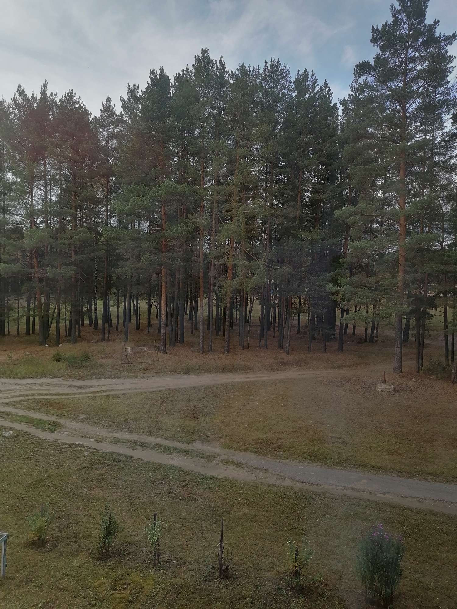 В одной минуте ходьбы от дома сосновый бор.