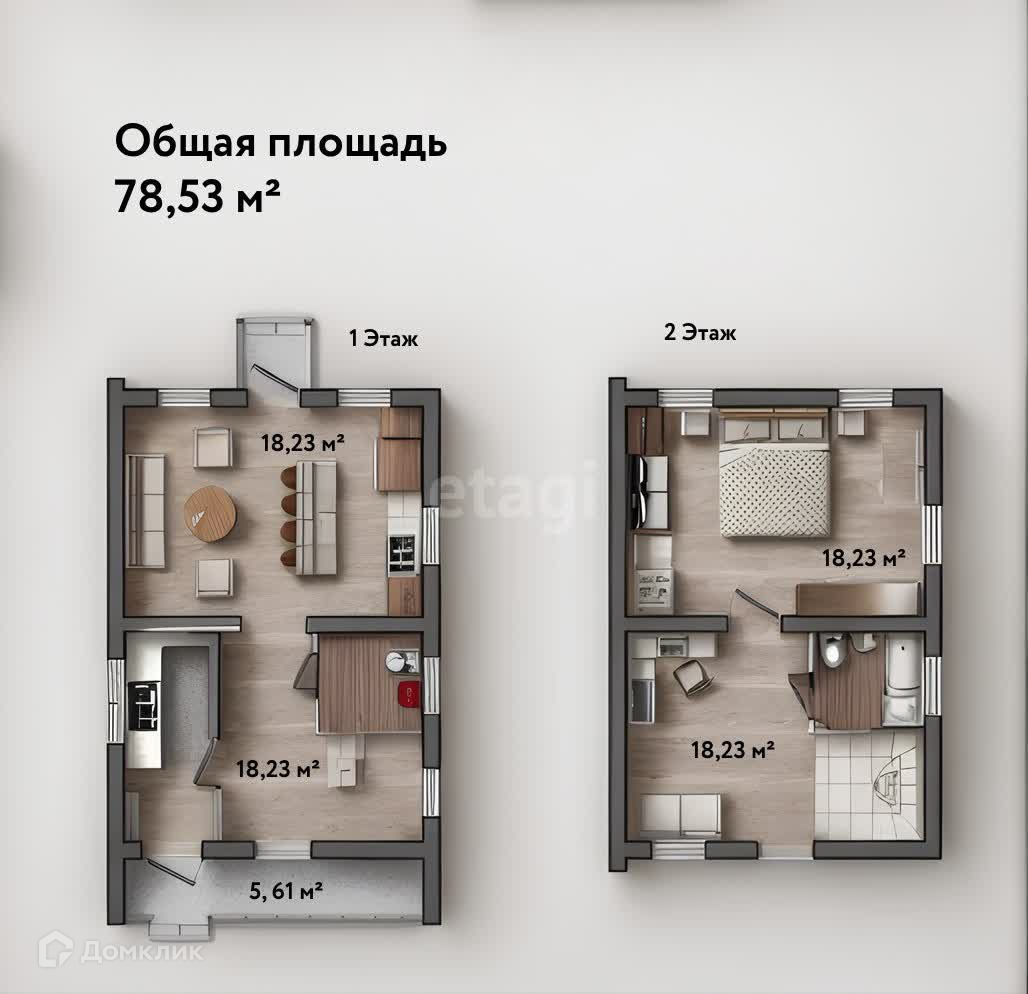 2-этажный таунхаус, 78.5 м2, на продажу в поселке Мелехово, Восточная улица