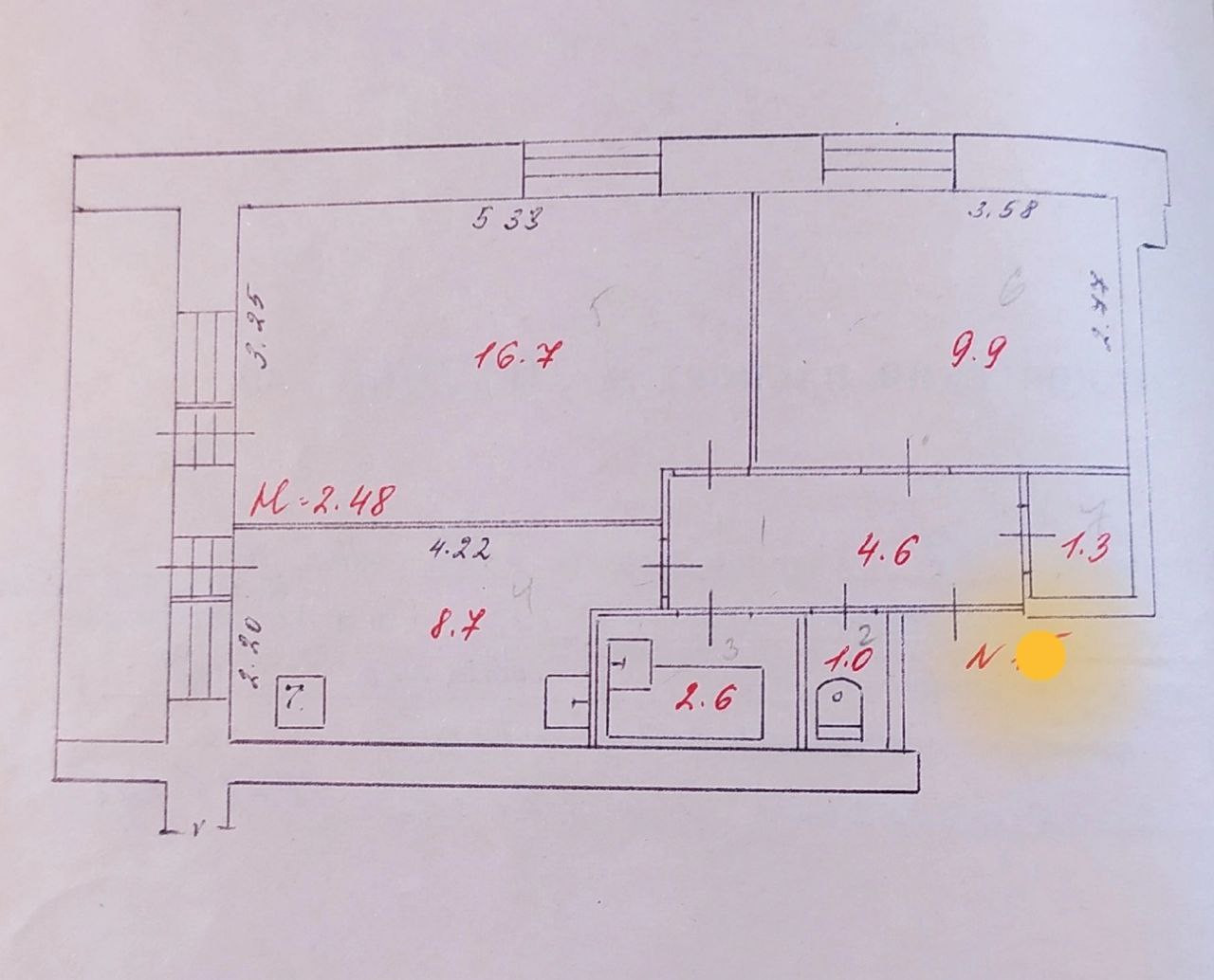 Высота потолков 2.48 м