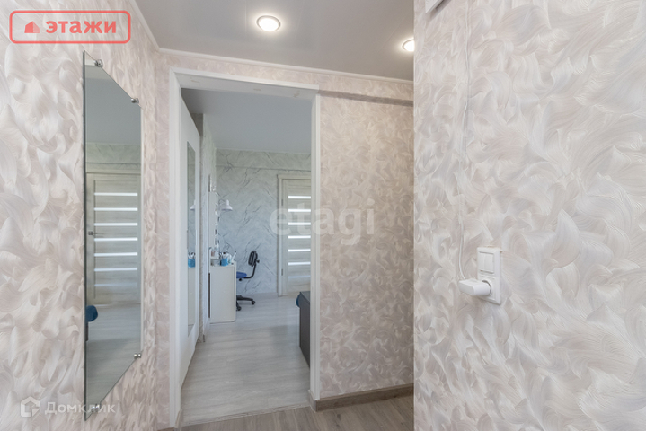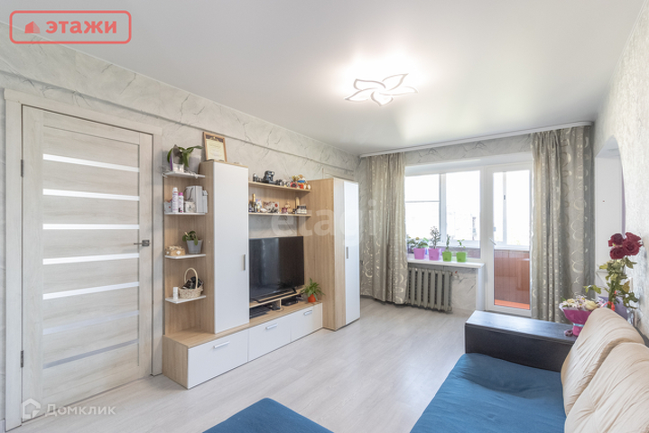 Квартира представлена светлой гостиной 17,4 кв.м., двумя спальнями 9,8 и 7,9 кв.м. соответственно, коридорной зоной 4,4 кв.м., объединенным санузлом: ванная 2,1 кв.м., туалет 1,1 кв.м., уютной кухней 6,2 кв.м., а также застекленным балконом.