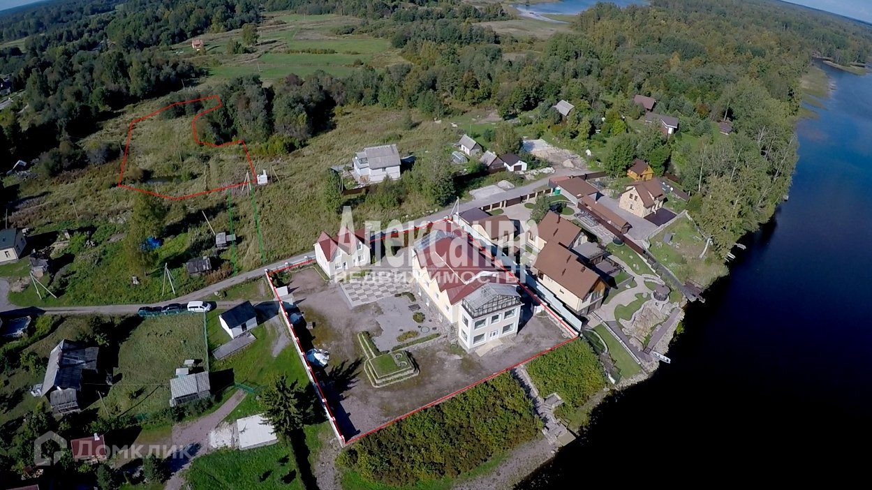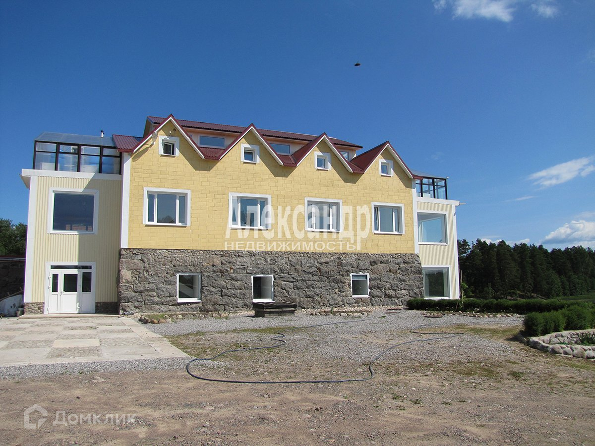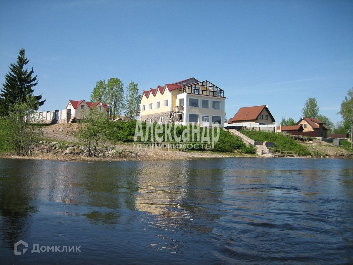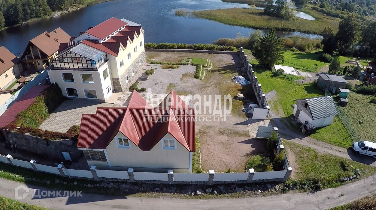 Территория: 2 участка (в собственности у частного лица) - застроенный участок 20 соток с гостиницей и кафе на берегу Вуоксы (1-я очередь), и незастроенный участок 70 соток (2-я очередь)
