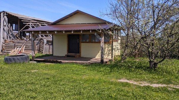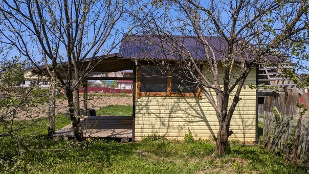 Постройки во дворе: хозяйственный пристрой, баня, яма для хранения овощей с летним домиком, теплица.