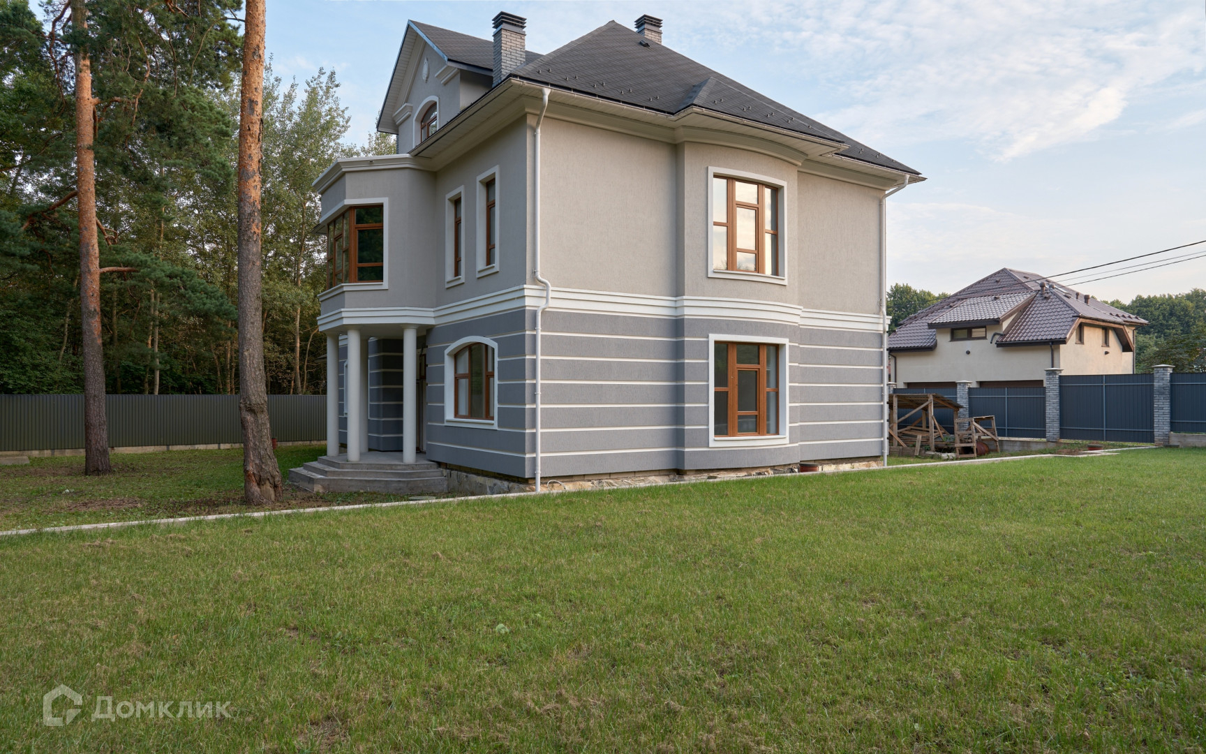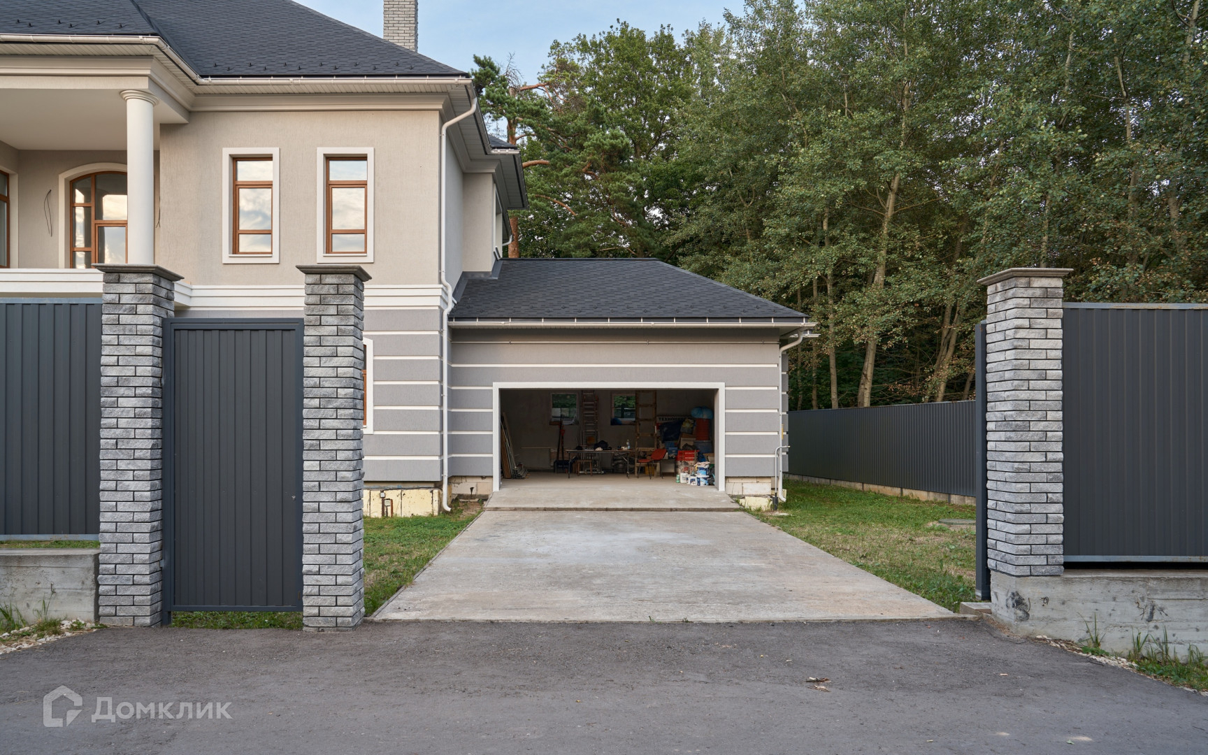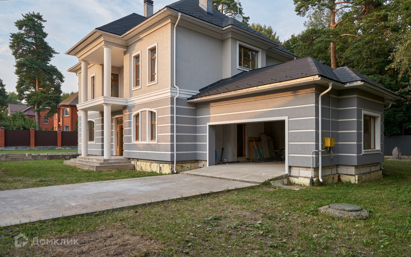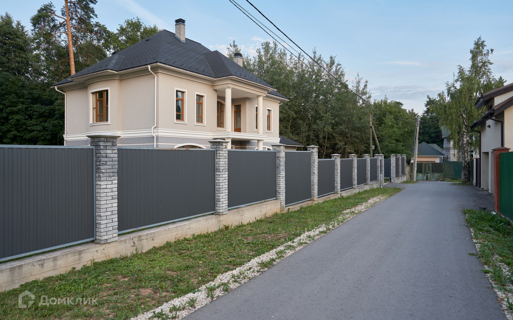 На участке сделана система дренажа, установлен забор из профлиста на капитальном фундаменте, откатные электрические ворота. Перед домом забетонирована парковка и зона барбекю 35 кв.м с проведенными к ней водоснабжением и канализацией.