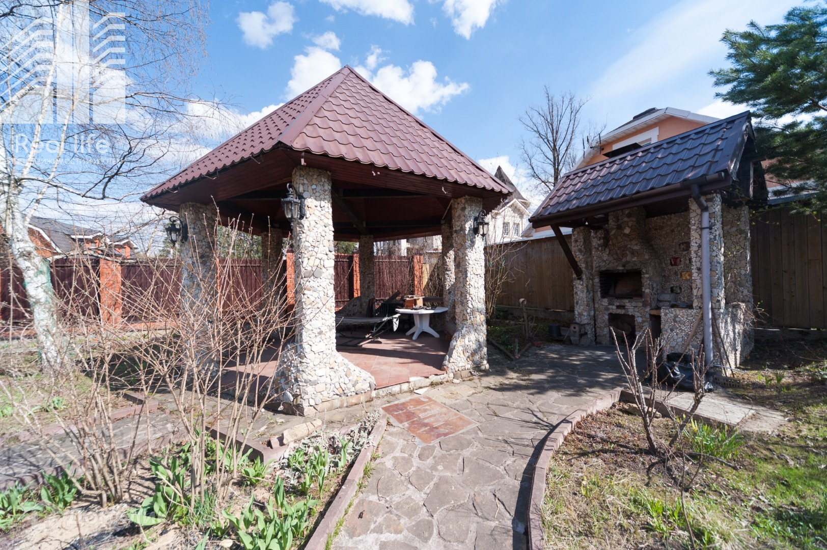 Дом находится на закрытой охраняемой территории, где ведется круглосуточное видеонаблюдение, асфальт. Земельный участок 15 соток, квадратной формы, ровный, грунт завезен чернозем, много плодово-ягодных деревьев, цветущий сад весь сезон. Огорожен участок со всех сторон. На территории расположен дом площадью 496 кв.м., гостевой дом 75 кв.м., закрытая беседка, зона с мангалом и открытой беседкой.