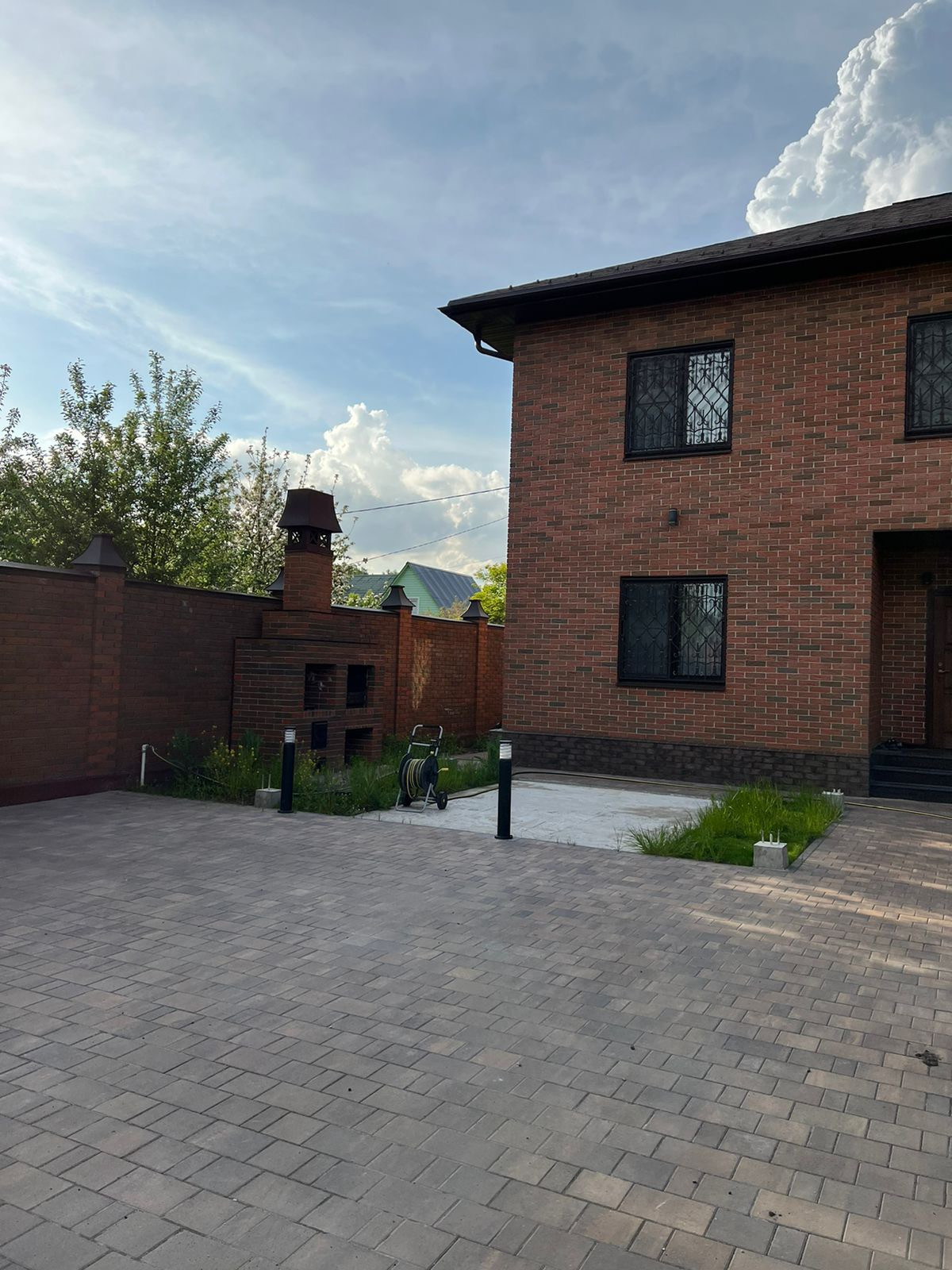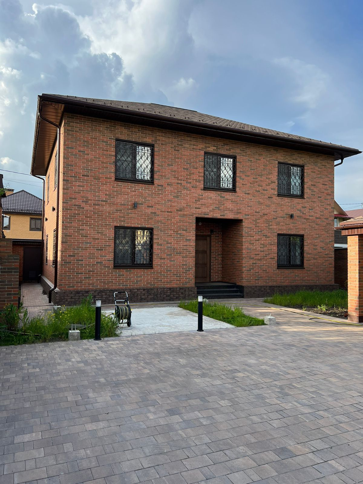 Новый дом с новой мебелью (прописка и Ипотека). Дом «заходи и живи"расположен в уютном районе Подмосковья. До Москвы можно доехать своим транспортом по скоростной трассе аэропорта Домодедово, общественным транспортом до метро Домодедовская или до ж\д станции. Материалы стен — дагестанский камень, утеплитель технониколь, облицовка кирпич BRAER «Баварская кладка»; кровля — гибкая черепица BRAER с двойным утеплением; фундамент — монолитная плита; входная группа — (лестница) из гранита, входная дверь с терморазрывом; перекрытия — монолитные плиты; мраморная лестница на второй этаж; окна от производителя РЕХАУ ИНТЕЛИО и мраморные подоконники; «теплый пол» по всему дому; пол первого этажа выложен из керамической плитки Versace; пол второго этажа керамогранит «Французская елка»; стеклянные межкомнатные двери оснащены качественной фурнитурой (австрийские кодовые замки, итальянские дверные ручки Марио (ягуар); санузел оснащен сантехникой высокого качества (биде, унитаз, смесители) от испанского производителя; душевая кабина (Германия), брусчатка Брайер-старый город Ландхаус; коммуникации: отопление дома — котел пеллетный, трубы и радиаторы от производителя Будерус; энергоснабжение 15 кВ; септик топаз, водоснабжение из собственной скважины. На участке имеется зона барбекю, навес на два машино-места и дренажная система по всему участку, возведено техническое помещение под автономный генератор. Комфортное проживание обеспечено удобной планировкой дома: гостиная зона, кухня, санузел, техническое помещение размещены на первом этаже; четыре спальных комнат и гардеробная обустроены на втором этаже.