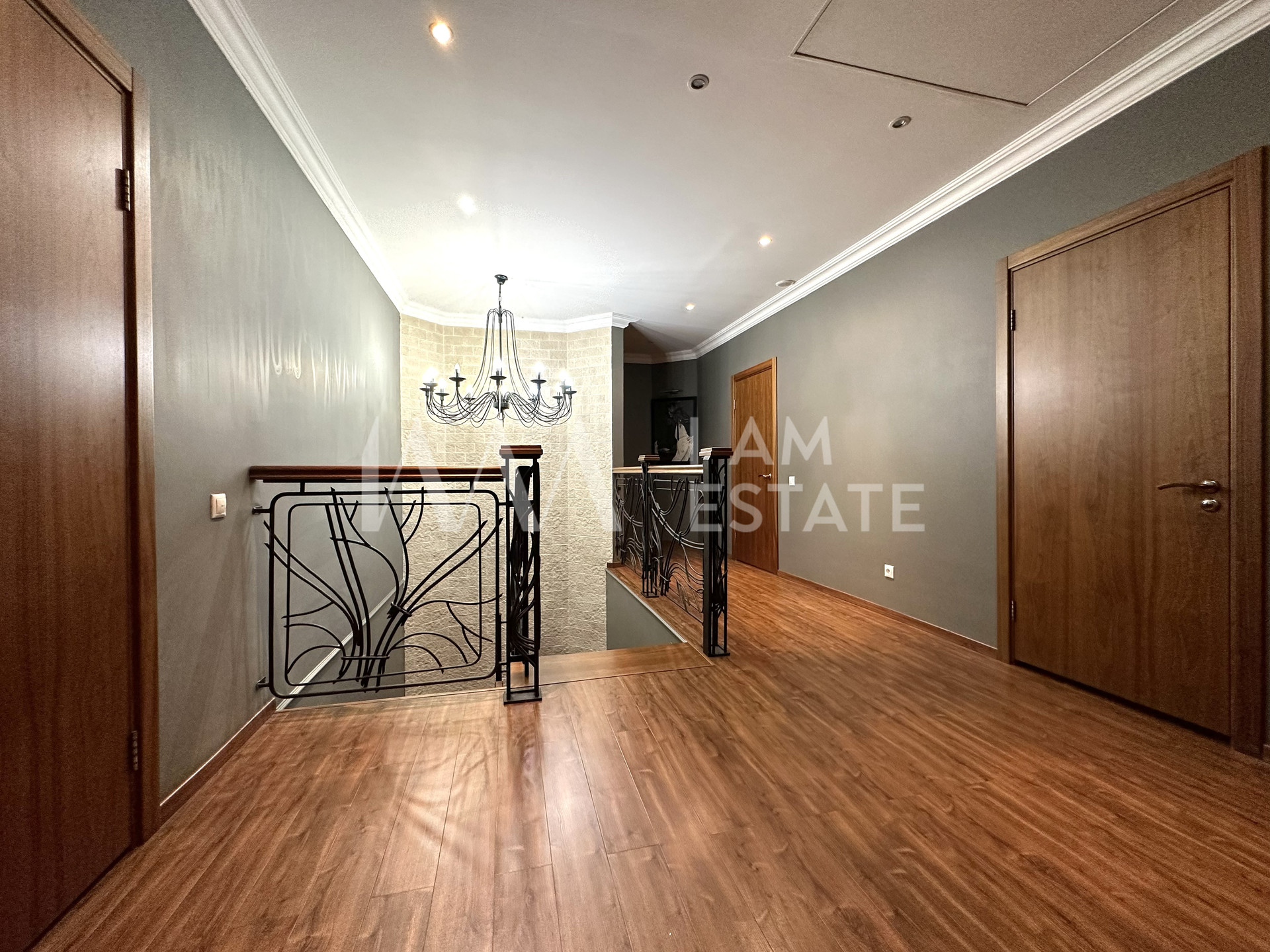 Второй этаж: холл, рабочий кабинет, совмещенный санузел, три спальни и гардеробная комната.