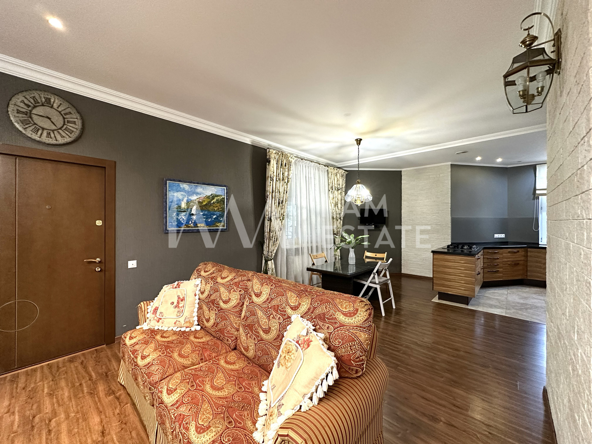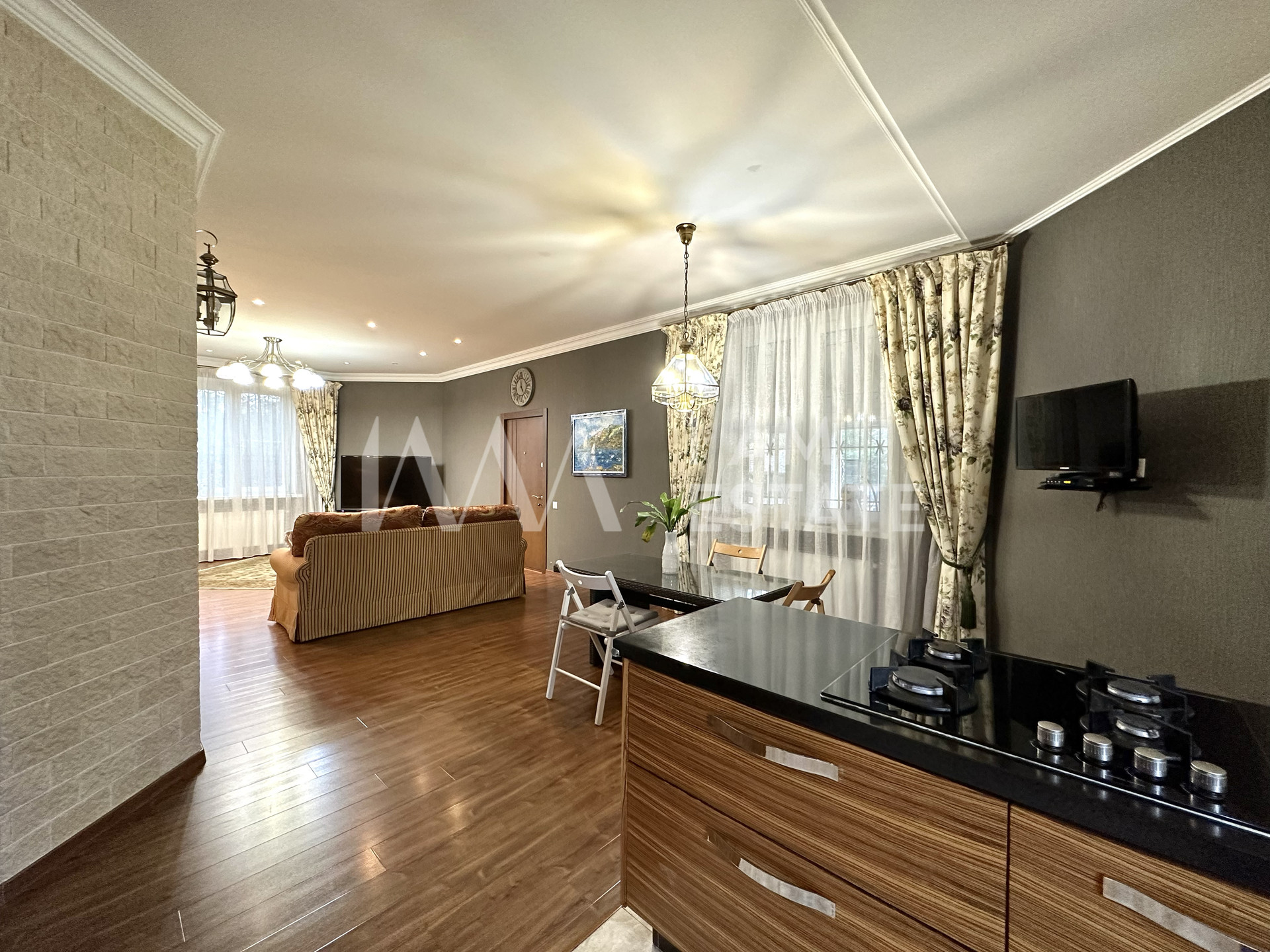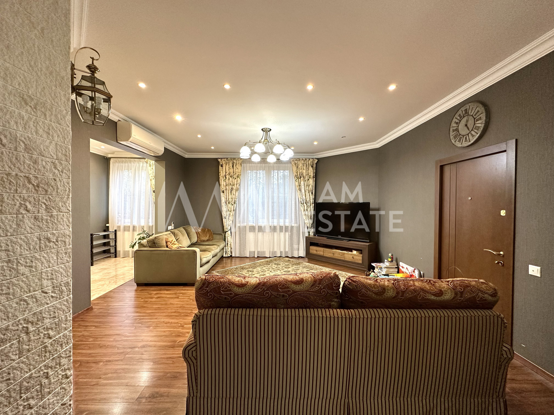 В доме выполнен качественный ремонт, состояние отличное. По договоренности, мебель может остаться новому собственнику. Жить можно сразу. Никаких дополнительных вложений не требует.